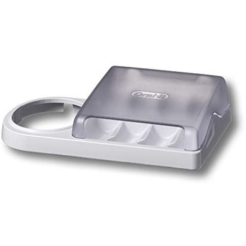 - STORAGE: The Oral-B 67040225 is a molded piece of gloss white plastic that fits around any standard Oral-B electric toothbrush charging station/stand, and features storage slots for up to 4 brush heads and a charger