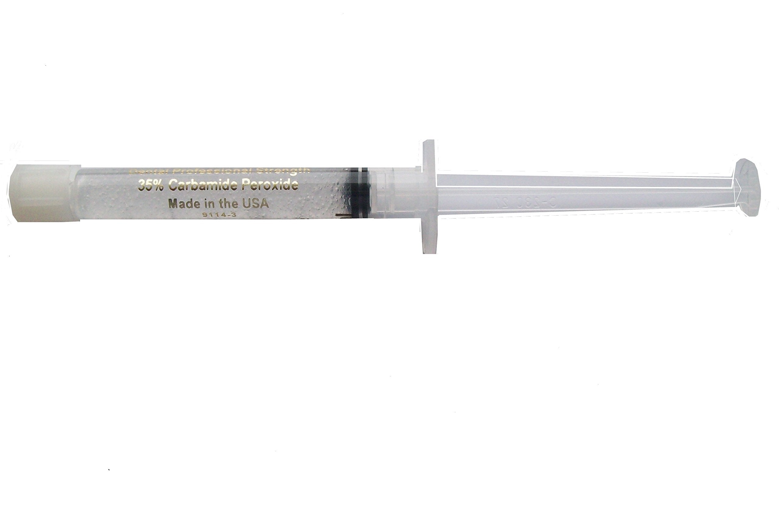 - Whitening Gel 3ml Syringe Dispensers in 35% Carbamide Peroxide strength, the same professional formula that dentists prescribe to their clients. The whitening gel is a high viscosity formula, critical for suspension of gel on tooth surfaces. Qty 10 Whitening Syringes.