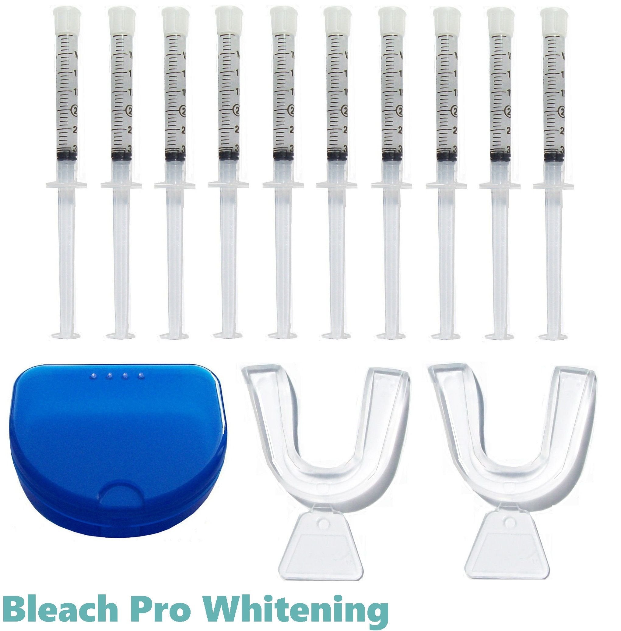 Teeth Whitening Kit 35% Carbamide Peroxide, 10 Tooth Bleaching Gel Syringe Dispensers, 2 Thermo Forming Dental Trays with Storage Case