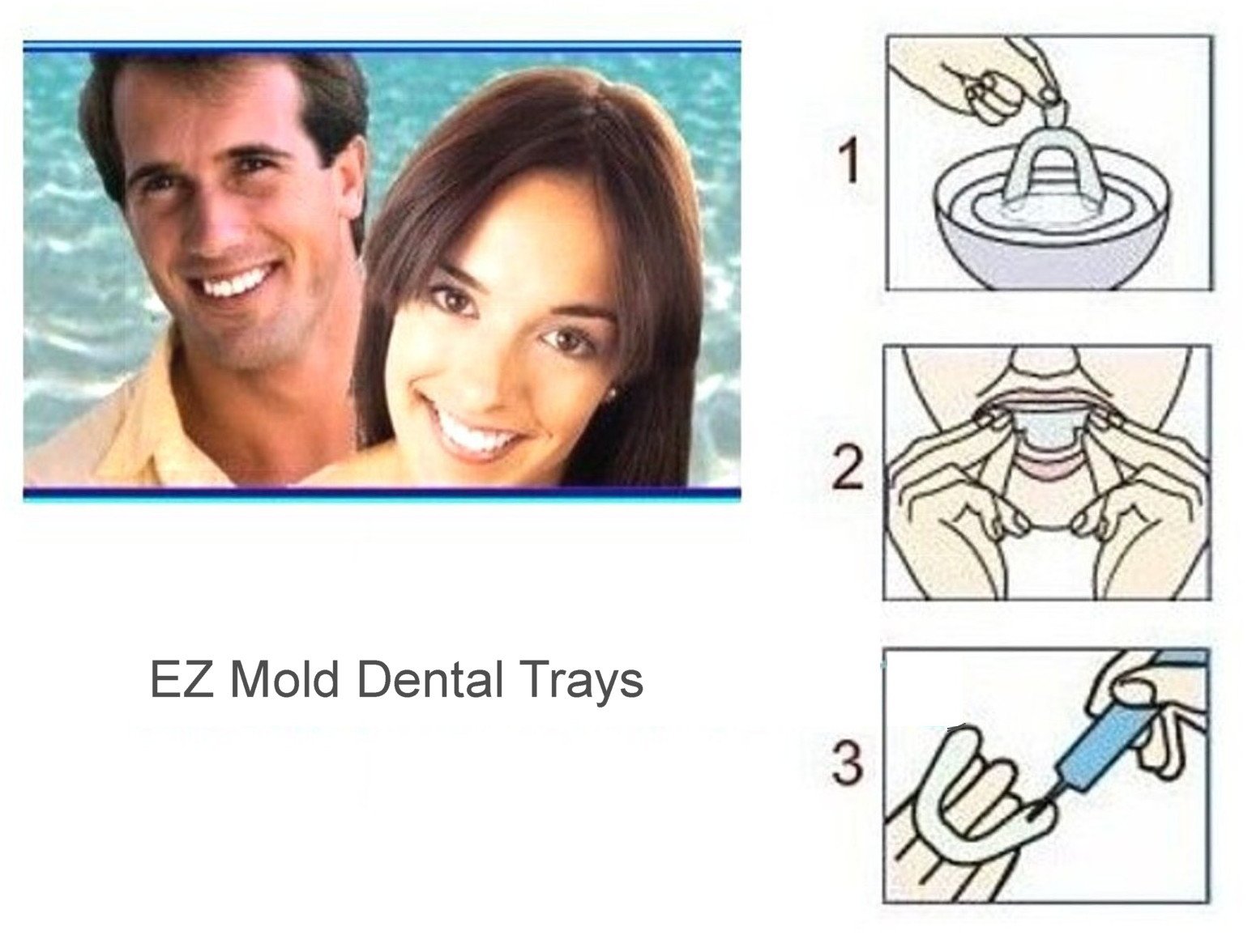 • 2 EZ-Mold Dental Impression Mouth Trays with Handy Storage Case (color may vary from image). Dental impression trays are thermo-formed with hot water. Dental impression trays are designed for wear comfort and provide uniform teeth impressions for consistent whitening results. Made in the USA.