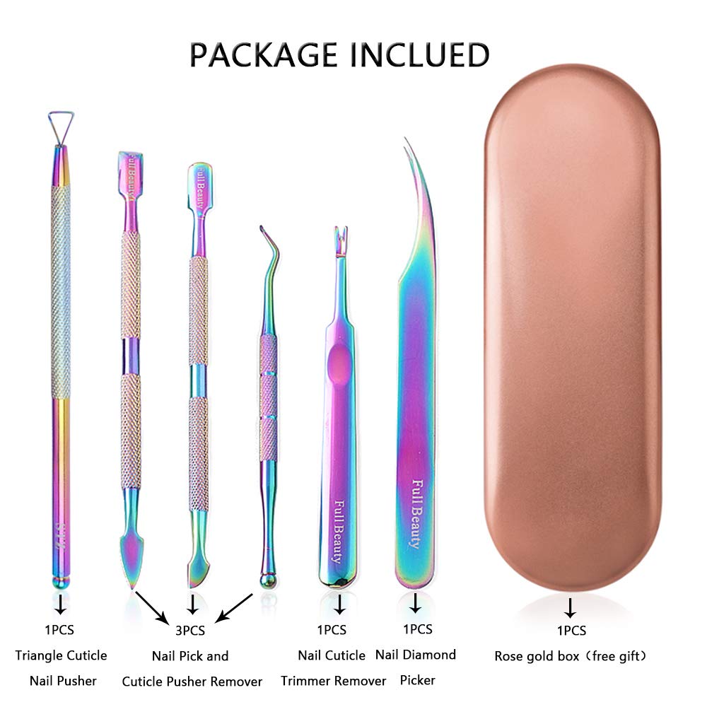 - Professional Nail Care Tools: Professionally used to repair the nail cuticle. Including 6 different cuticle cleaner tools such as cuticle pusher, nail pick and nail cleaner and so on. You only need a few steps to easily trim your nails. It is a great cosmetic tool for manicure and pedicure.