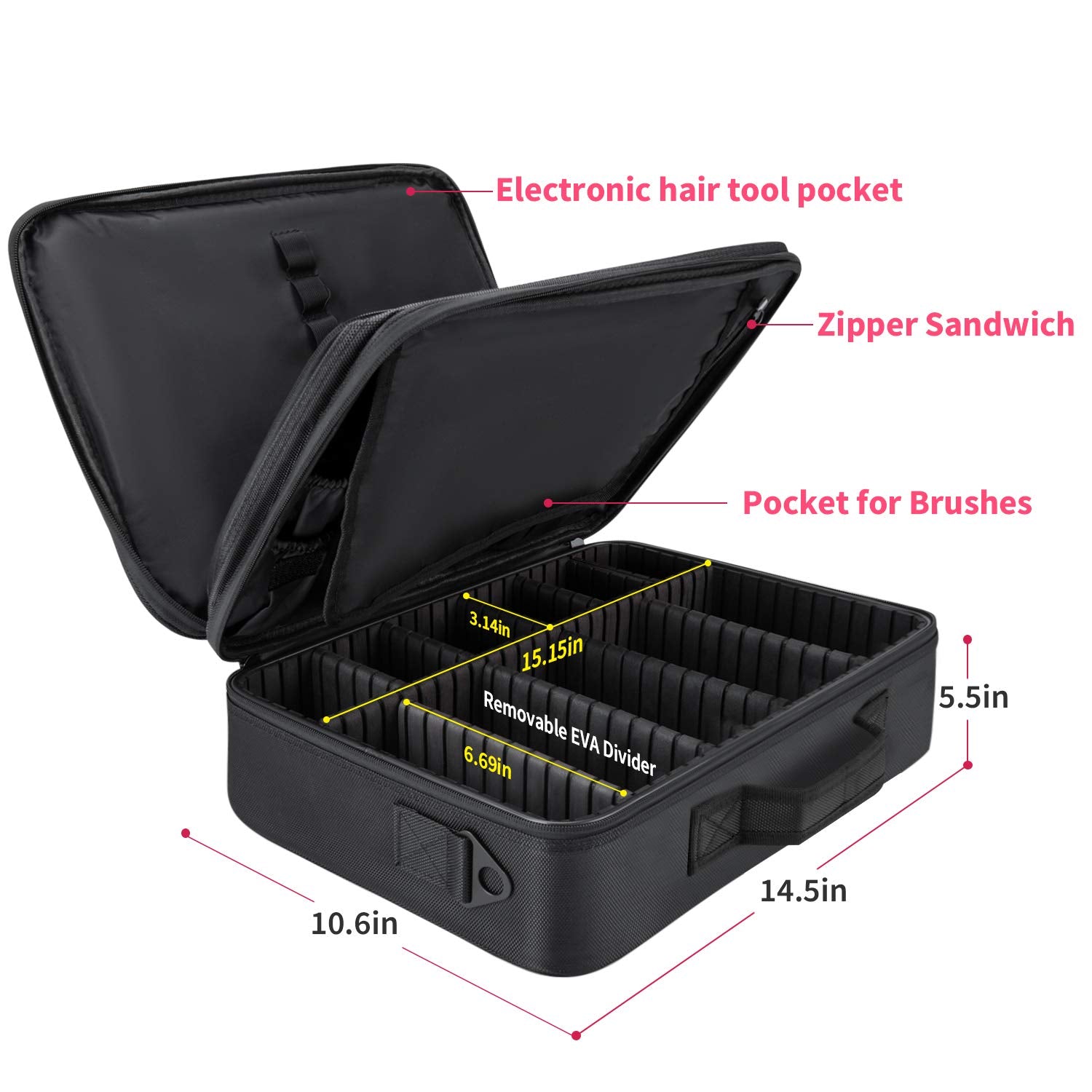 - 【LARGE STORAGE SPACE】Large-capacity three-layer cosmetic case, 14.5x10.6x5.5 inches, has enough space for cosmetics or accessories, such as lipstick, lip gloss, makeup brush, eye shadow palette, makeup palette, Hairbrushes, skin care products, nail polish, manicure tools and shampoos.