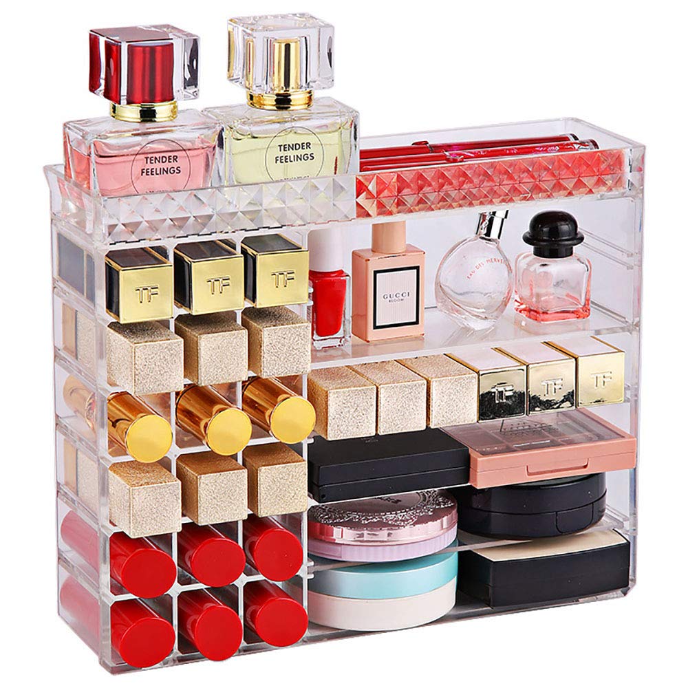 V-HANVER Multifunctional Acrylic Makeup Organizer Holder Countertop Vanity Storage Stand for Lipstick Eyeshadow Palette Perfume and More