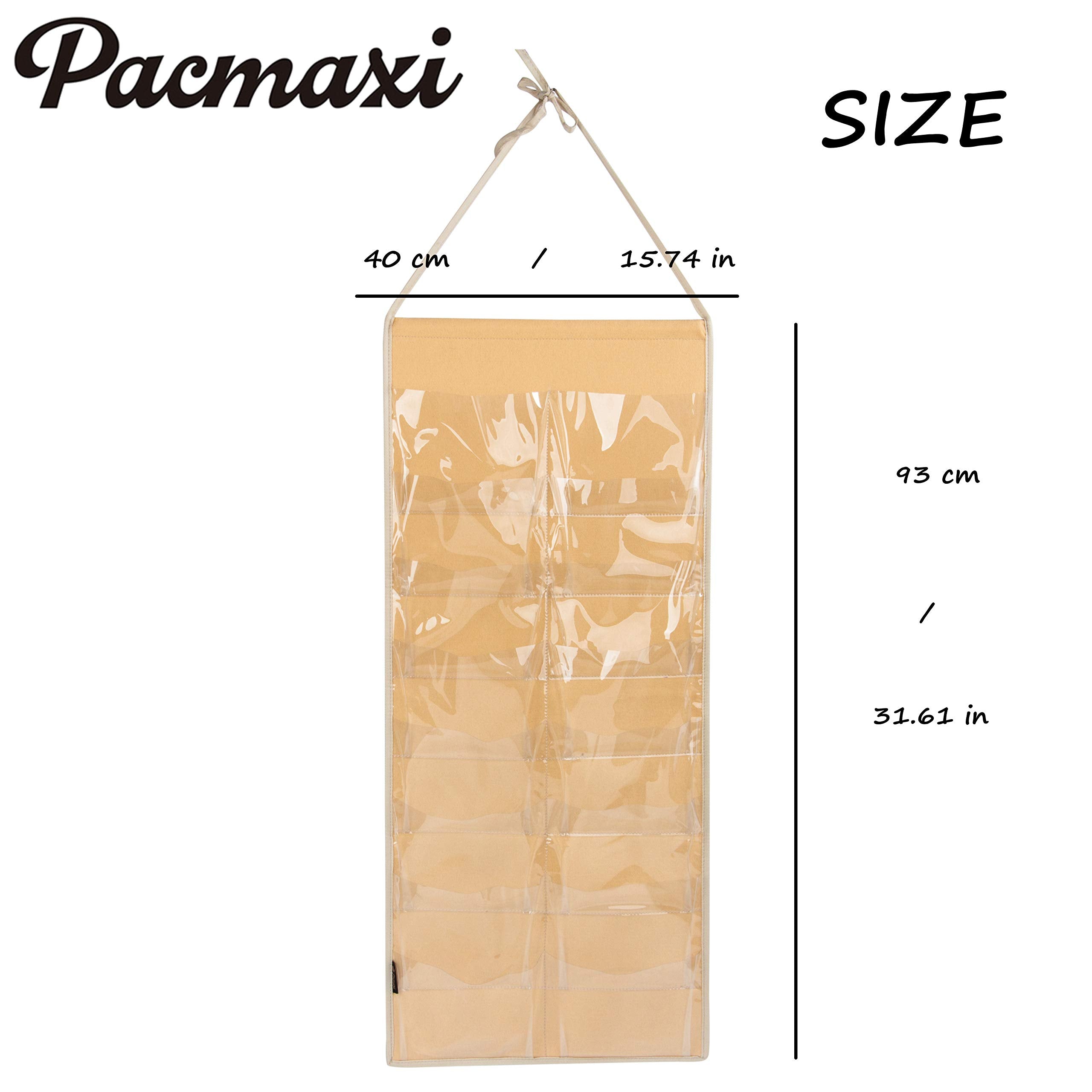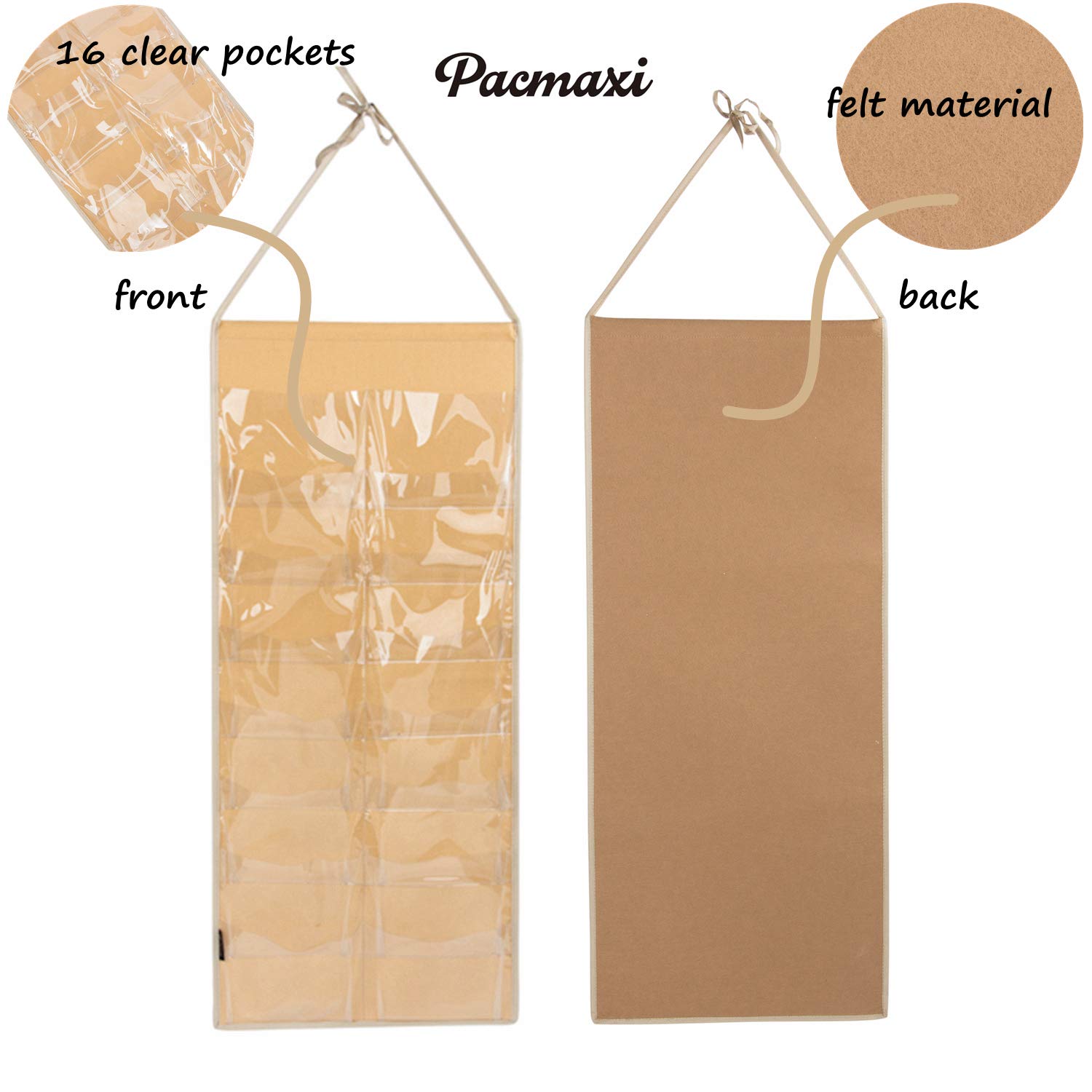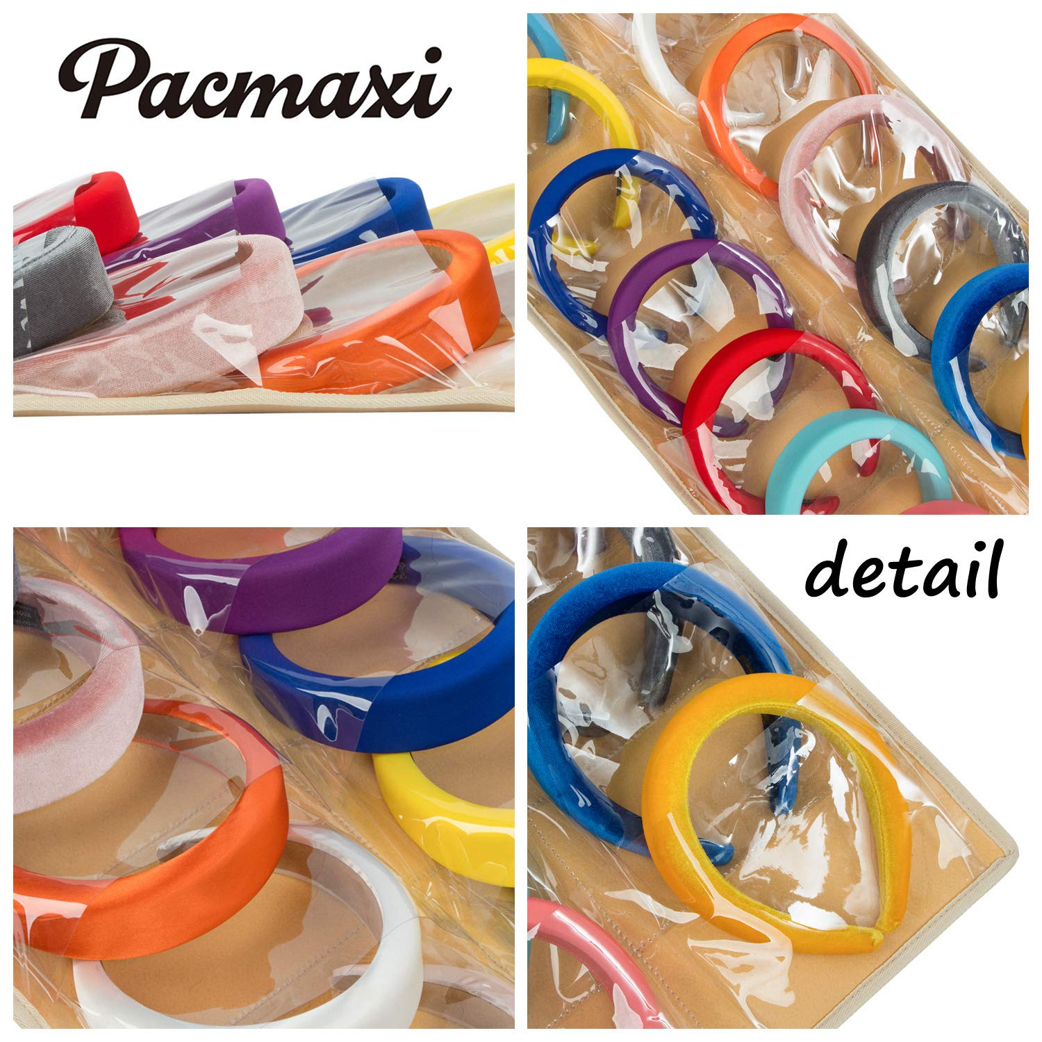 Women Padded Headbands Storage Organizer, Lady Hair Hoop Holder with 8 PVC Clear Pockets, Hanging Hair Clasp Rack Display Stand. (M-felt material-milk tea) by PACMAXI Store