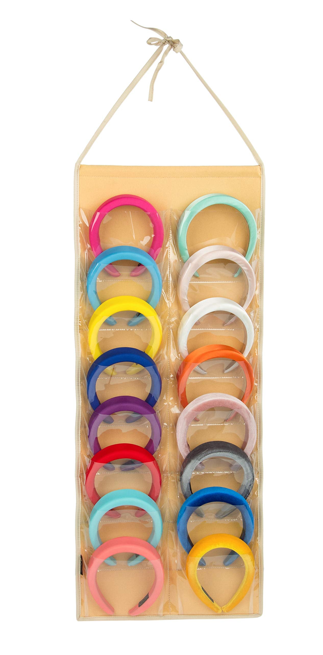- Keep Your padded headbands organized: easy to use, 16 clear pockets design to hold a wide variety of headbands size, come with an strap rope can be hanged the door or wall, quickly grab what you need.