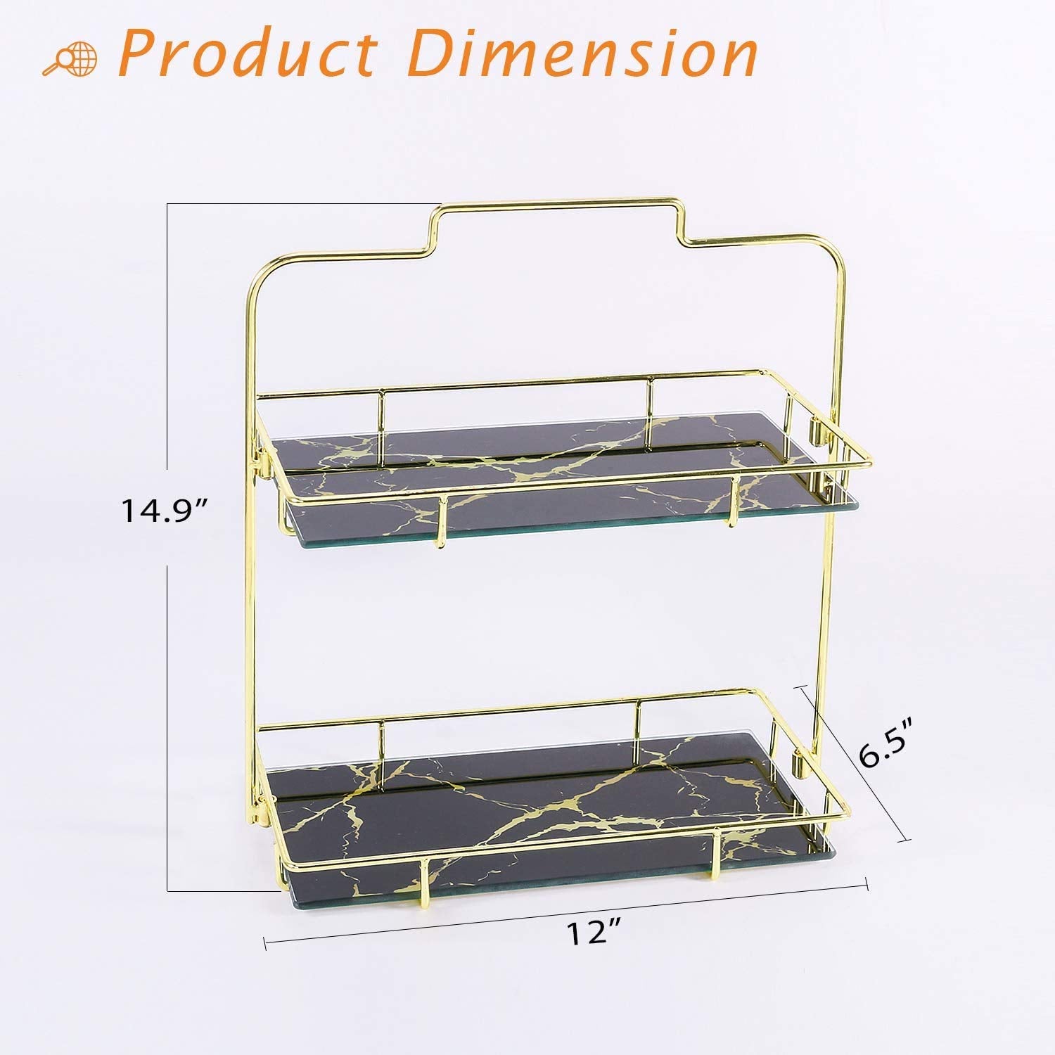 - [Classy Look] - Gold rectangular wire basket with removable black marbling glass tray, this cosmetic storage rack can easily give you a splash of luxury, displaying your makeups in a graceful and modern way!