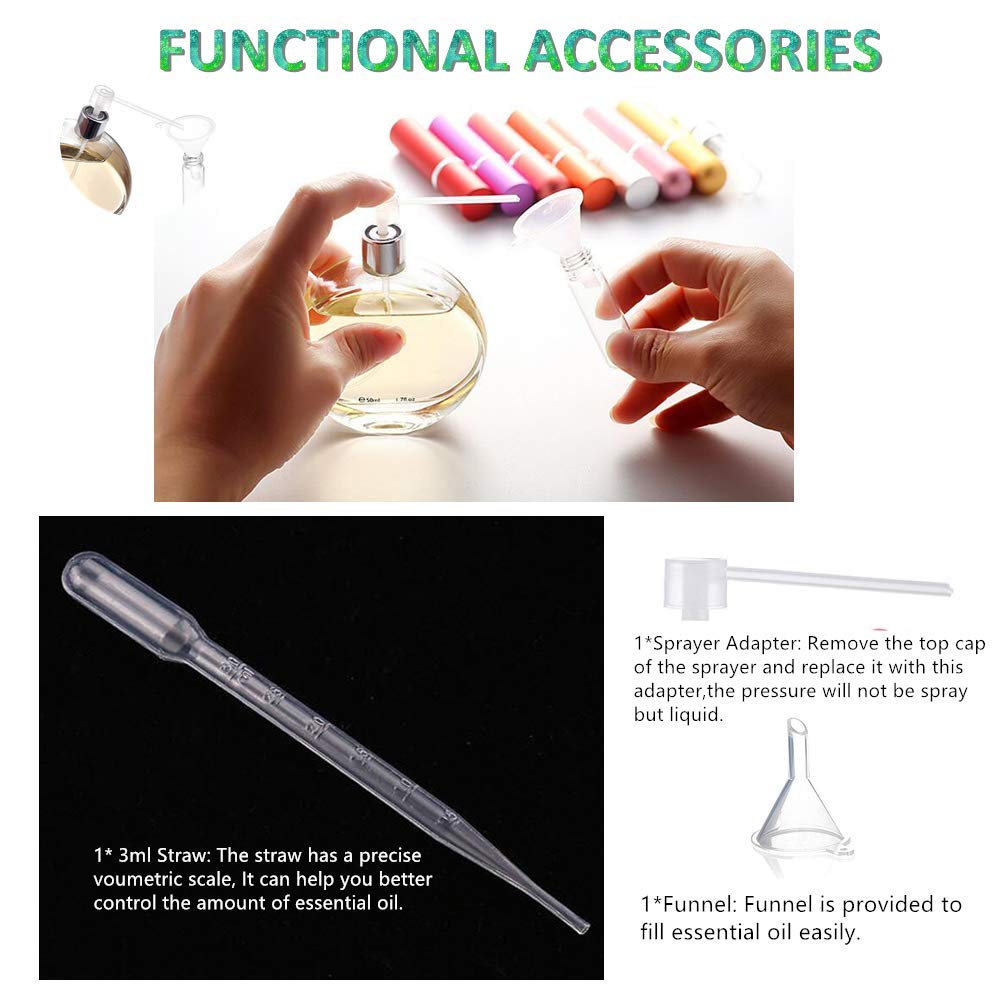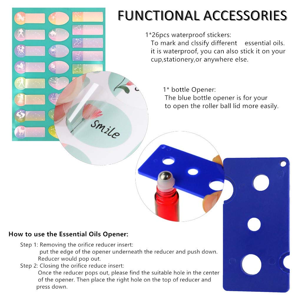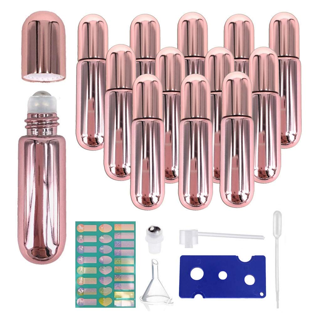 - 🌱【Luxury Essential Oil Bottle Set】The essential oil bottle set contains everything you need, 12x5ml rose gold essential oil bottles with roller balls, 1 openers, 1 droppers,1 Funnel,1 Sprayer Adapter, and 26 labels. Rose Gold glass roller bottles protect essential oils from UV rays and avoid rapid evaporation.The chic look makes your essential oils look extra special.