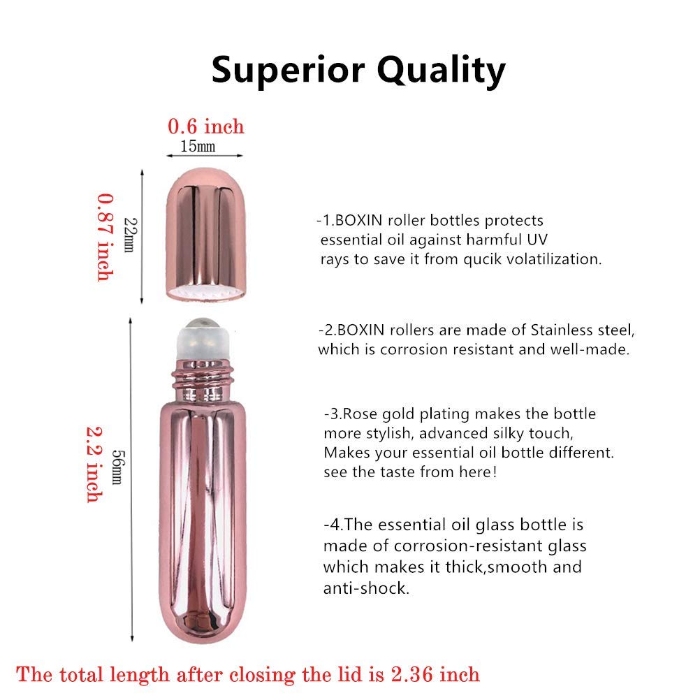 12pcs 5ml Essential Oils Bottles,Rose Gold Oil Roller Bottles For Essential Oils Mini,Perfume Roller Bottles Empty-Made Of High Borosilicate Glass by BOXIN Store