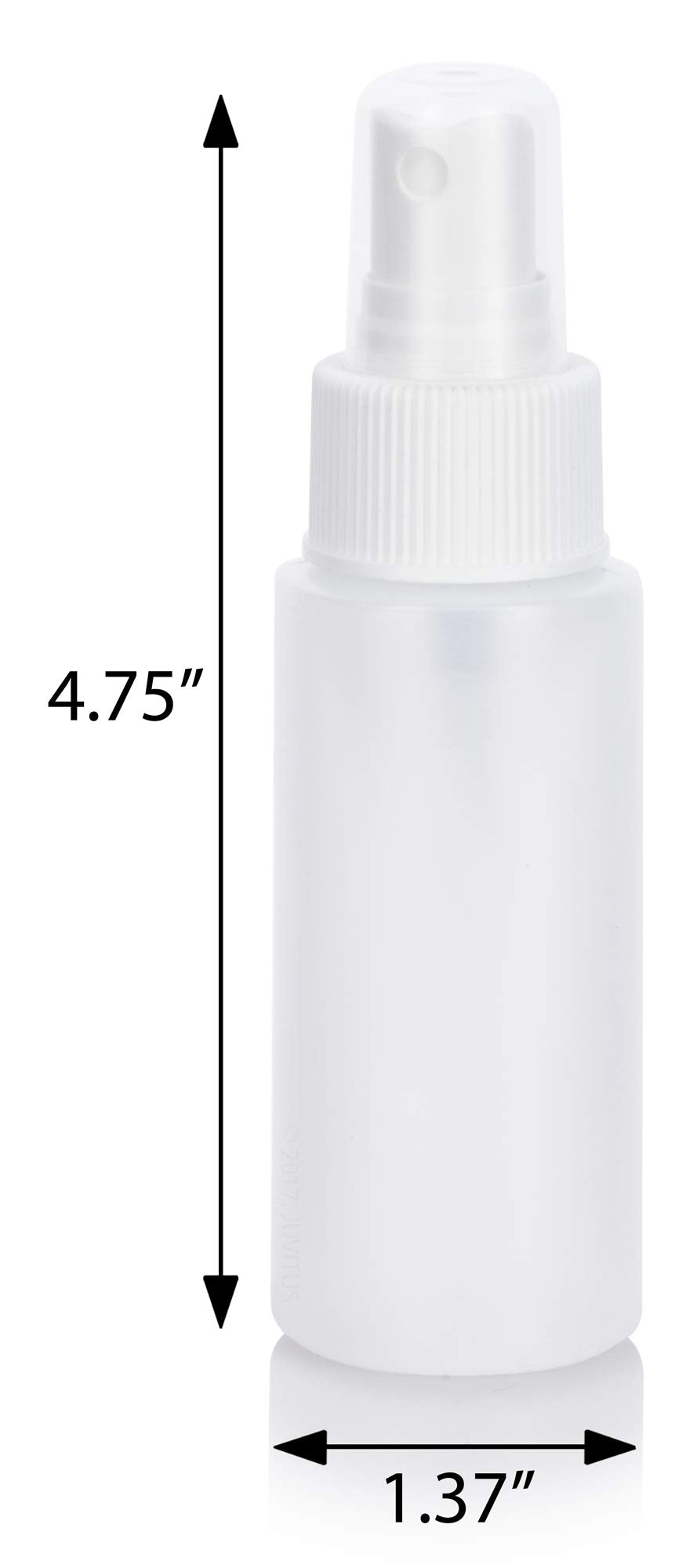 - Includes 12 - 2 oz / 60 ml Natural Clear HDPE plastic squeeze cylinder bottles with fine mist sprayer tops
