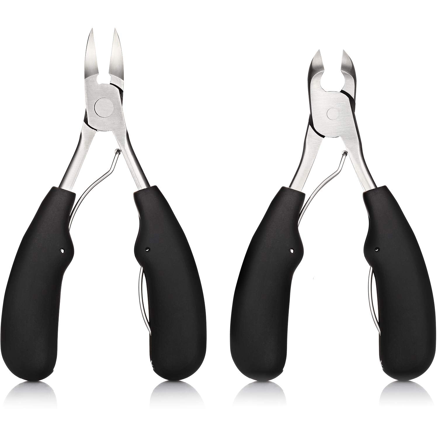 2 Packs Ingrown Large Toenail Clippers for Thick Toenails Heavy Duty Easy Grip Rubber Handle Style Toenail Clipper Ingrown Toenail Tool for Men, Seniors, Adults (Black)