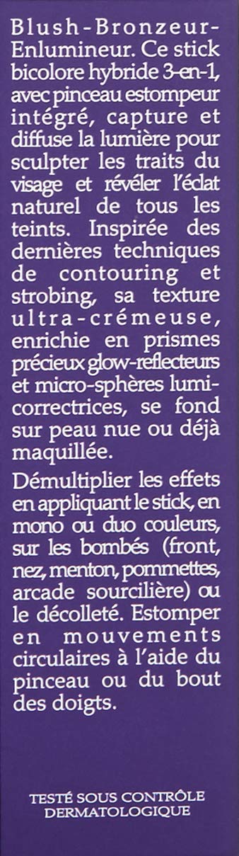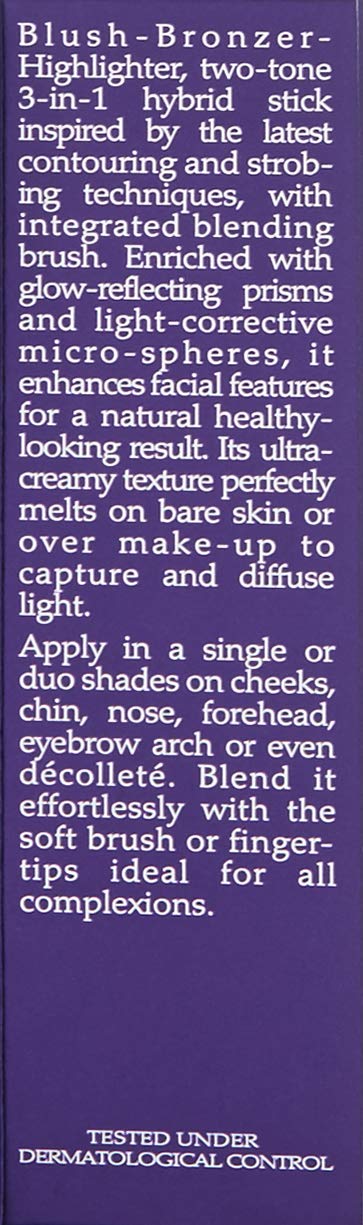 Blush - Bronzer - Highlighter This hybrid two-tone illuminator and bronzer face sculpting product is ideal for an easy, on-the-go contoured look. To use this product, apply in a single shade or duo shades on cheeks, chin, nose, forehead, eyebrow arch or even decollate. Blend it effortlessly with the integrated soft brush or with your fingertips. This product is ideal for all complexions.