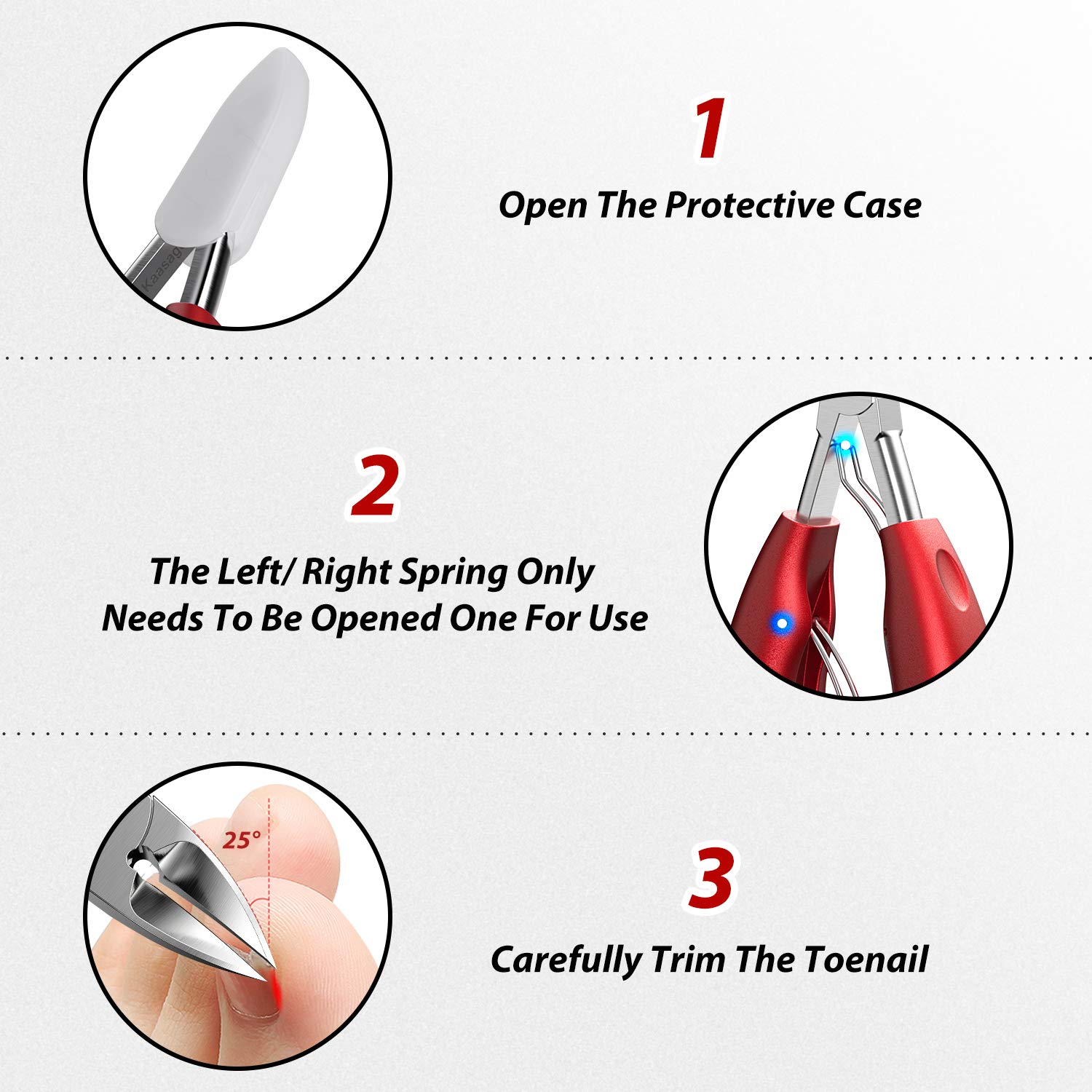 • [Double pare spring design] Professional toenail clipper keep the spring life and have good elasticity. Please note *Only one side spring can be used when using, and the toenails are easy to cut. Do not lift up the springs on both sides at the same time, because the springs will pop out and cannot be used.