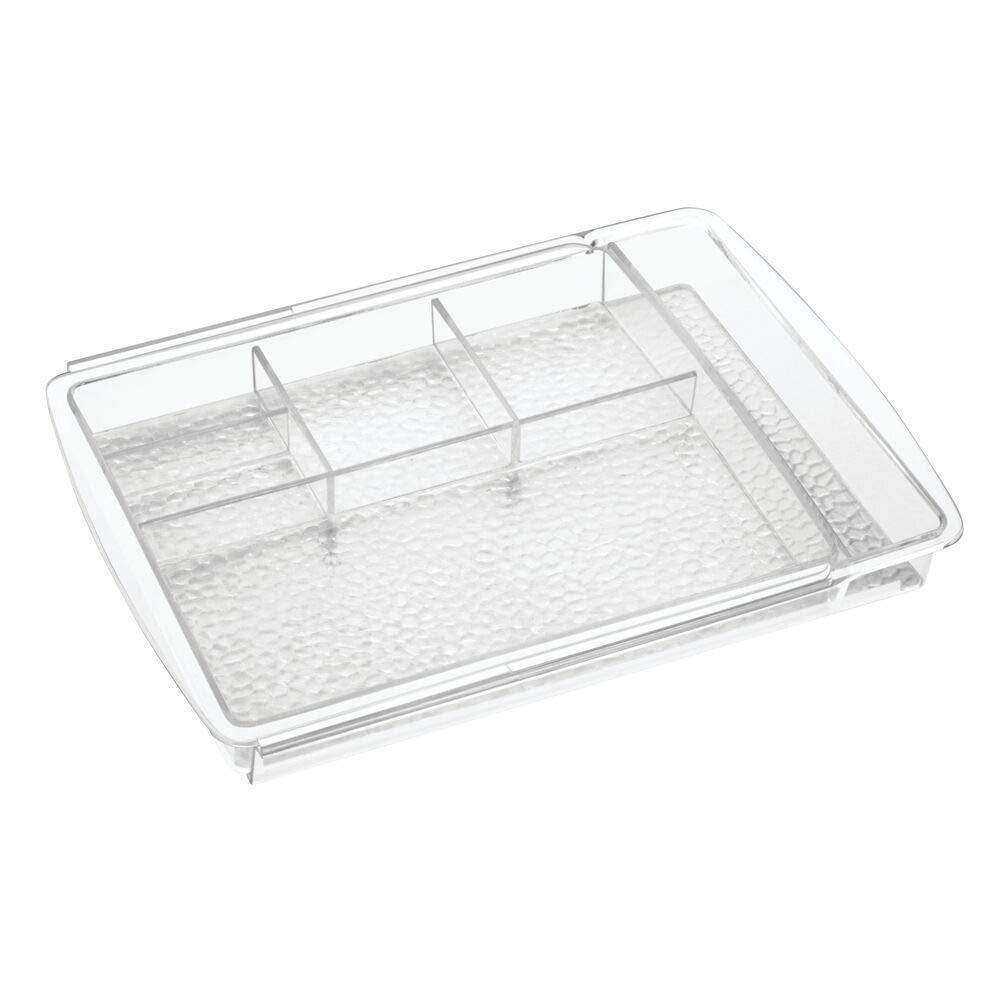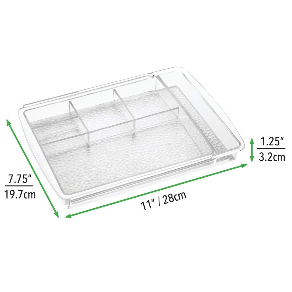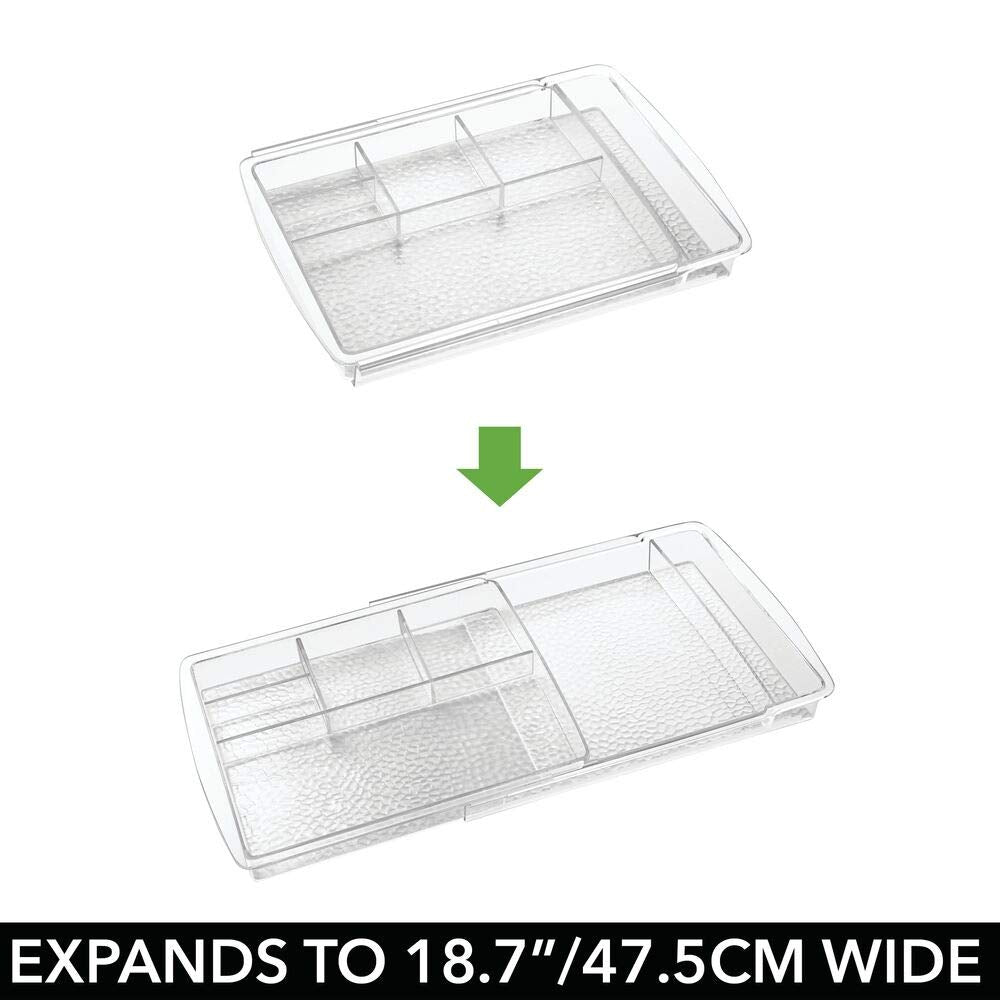 Digging though cluttered bathroom drawers and cabinets becomes a thing of the past with the expandable drawer organizer from mDesign. The organizer has six various sized compartments for storing eyeshadow, lipstick, makeup brushes and more. Expand the organizer to create a seventh custom sized compartment for even more storage space. Busy mornings are simplified - grabbing what you need right away is easy when you are organized, use multiples to create the system that works for you!