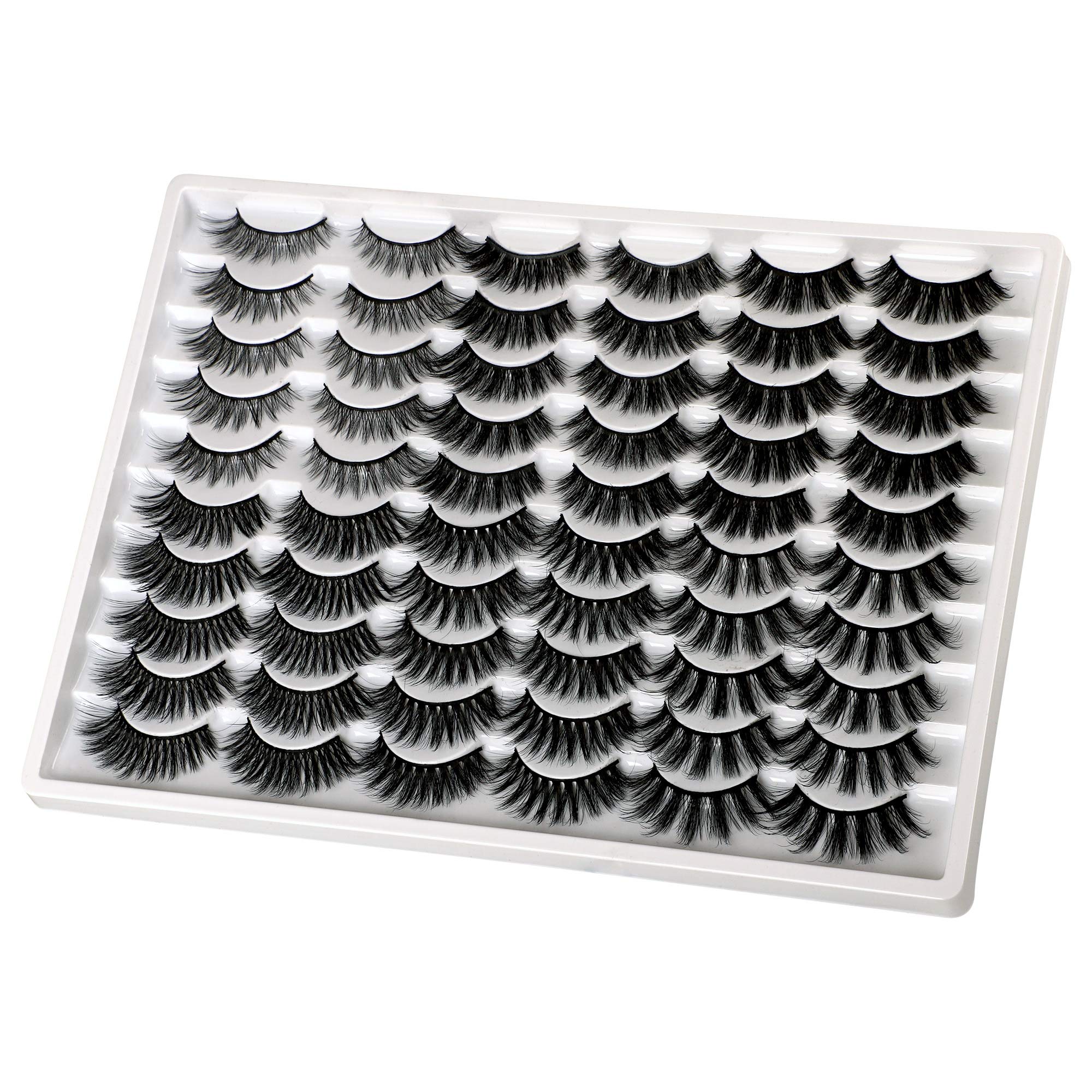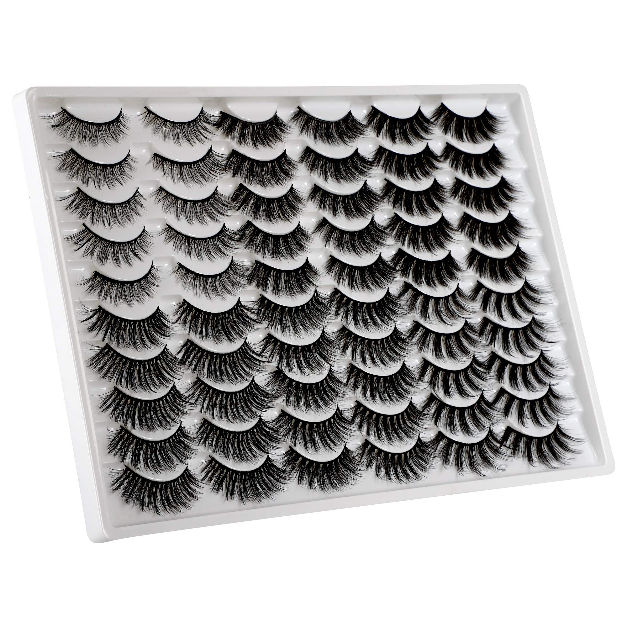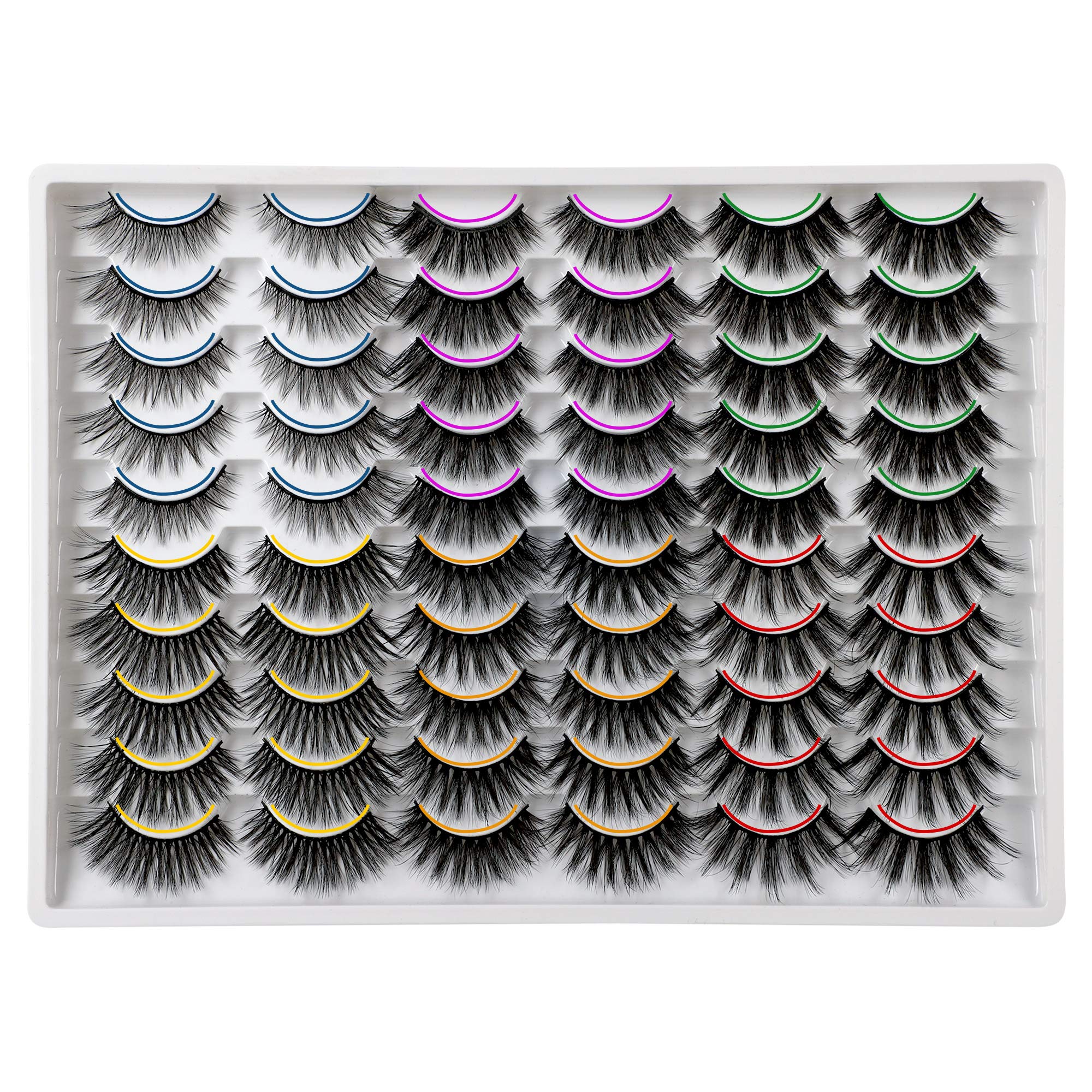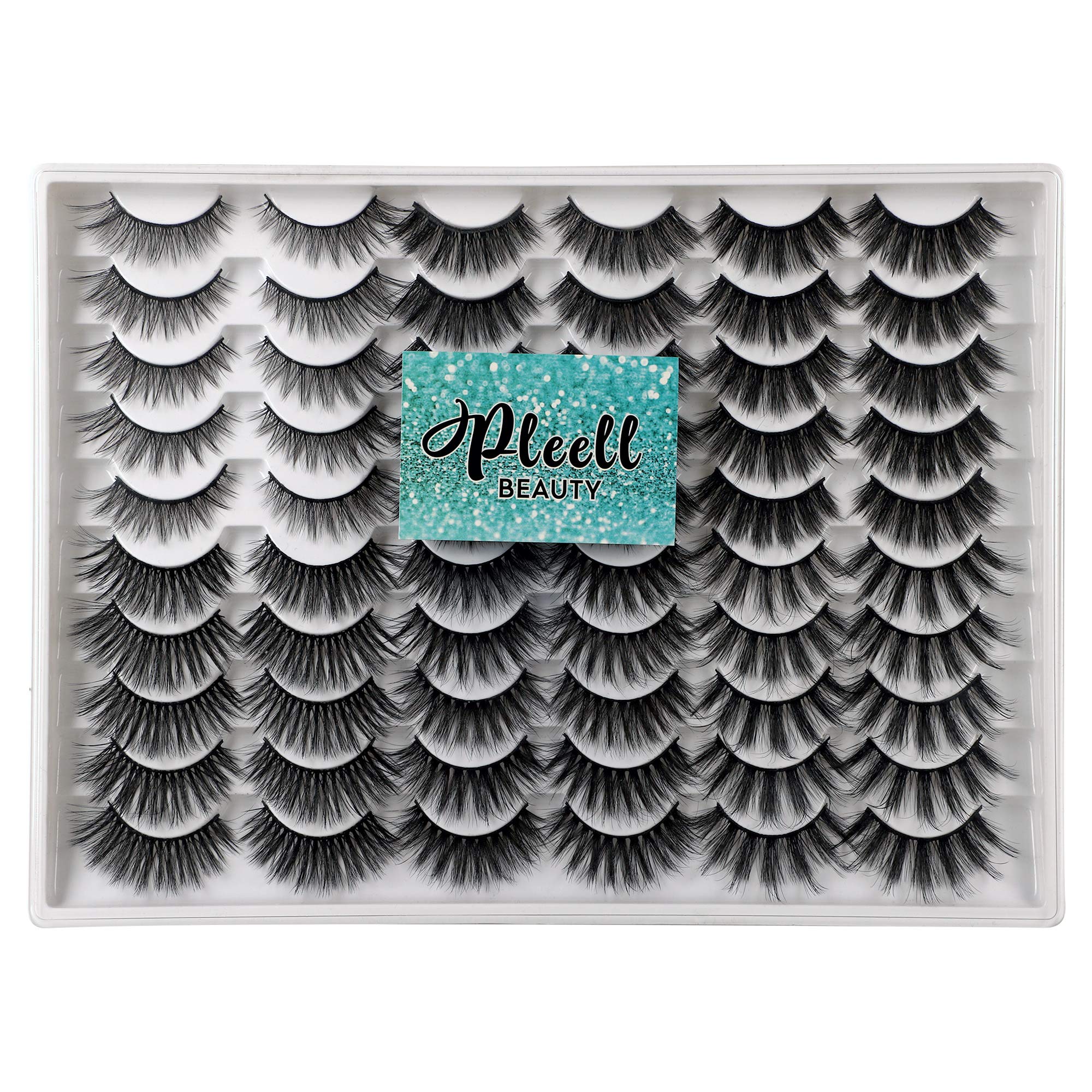 PLEELL 30 Pairs False Eyelashes 6 Styles Mixed Fluffy Lashes 13-19MM Long 3D Volume Dramatic Mink Fake Lashes Pack