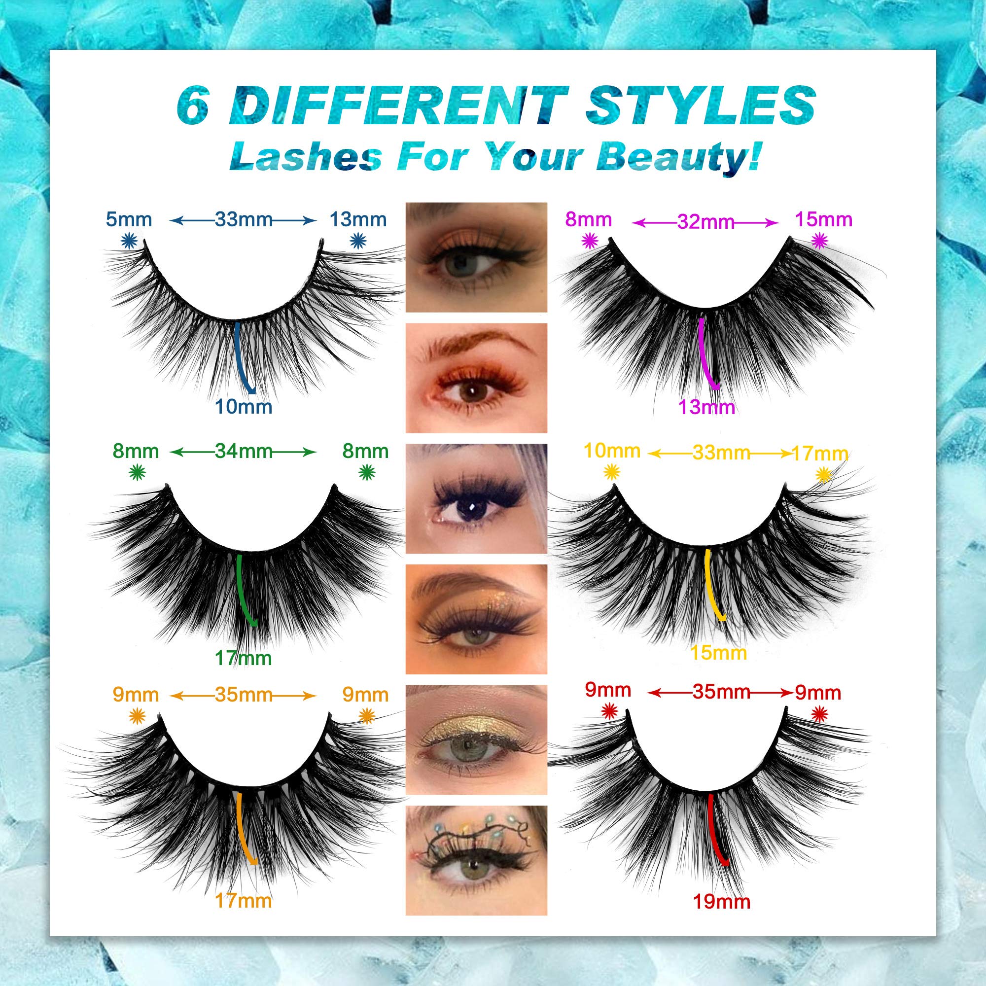 - 6 Different Styles lashes are perfect for variety makeup to attend a dozen parties with them.