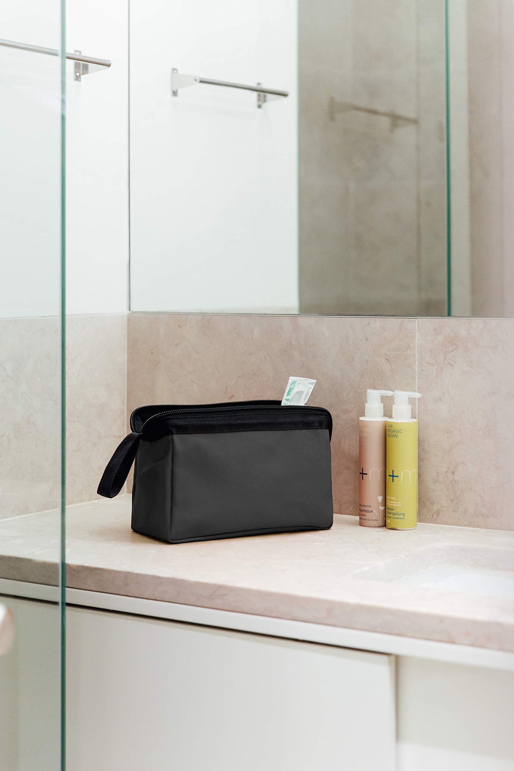 Ship shape: A classic cosmetic bag with a sturdy metal frame – the travelcosmetic from reisenthel can take it, even when your luggage is handled roughly by the airline.