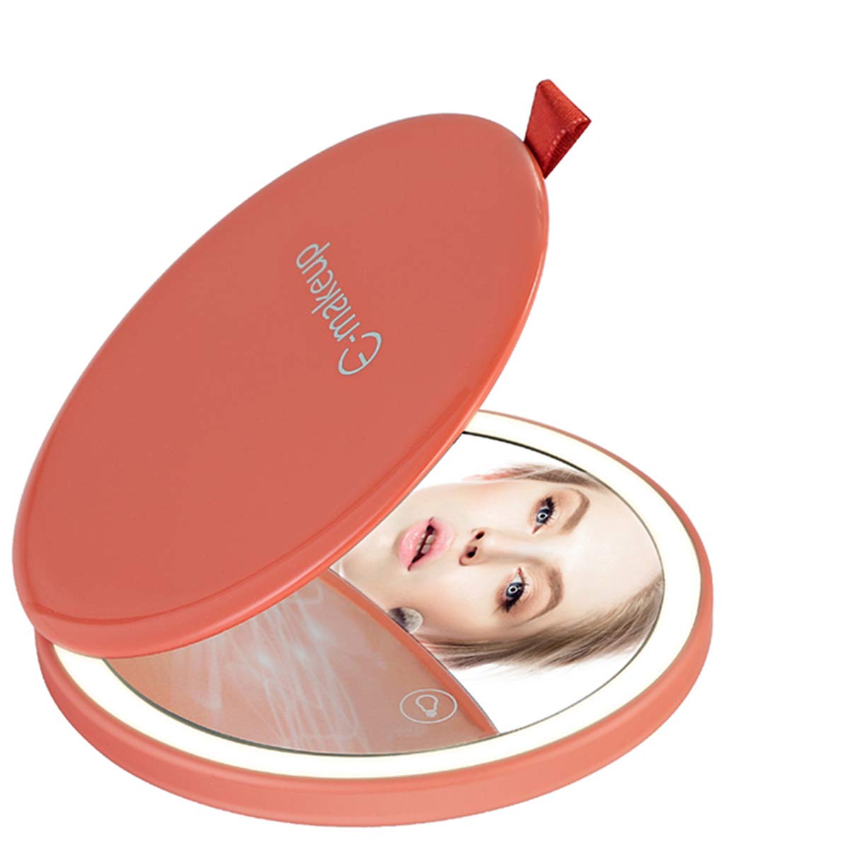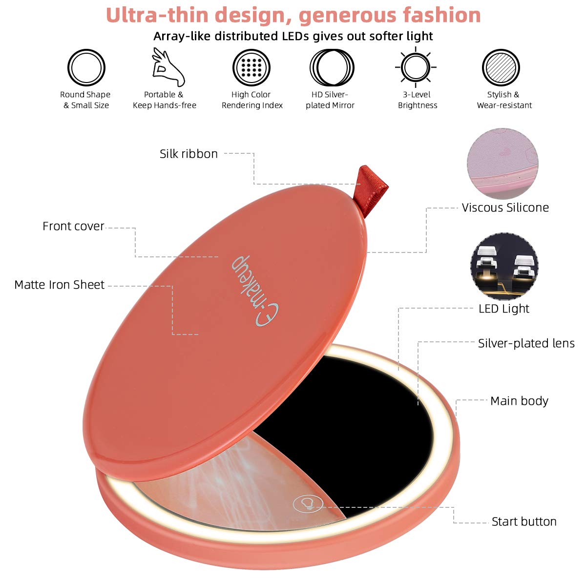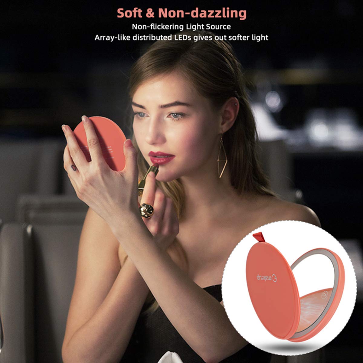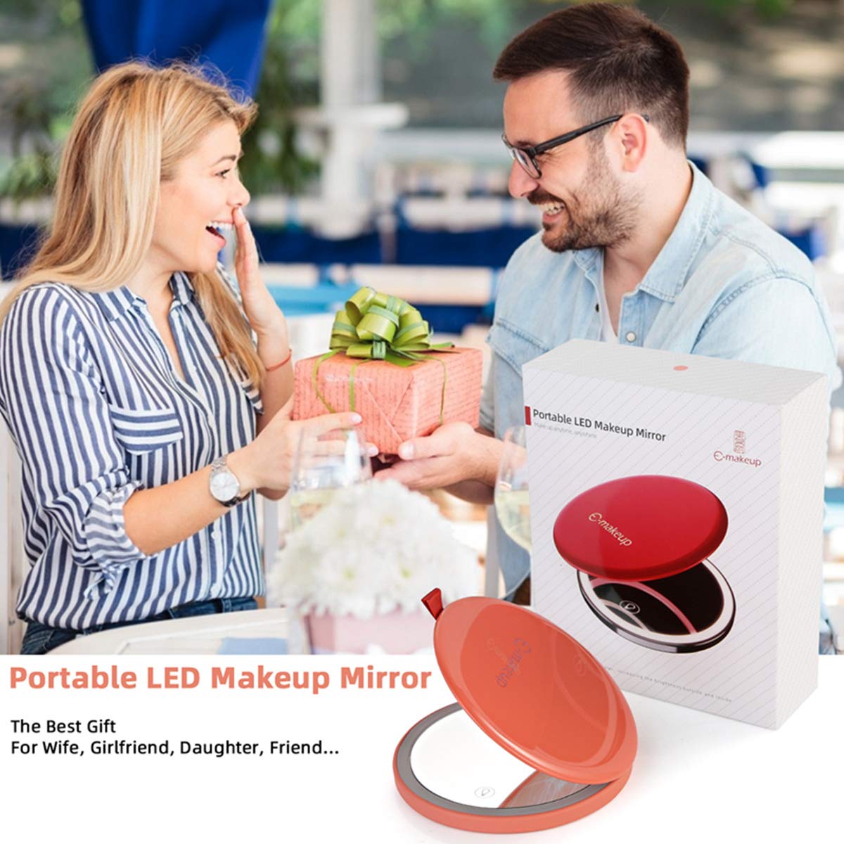 Travel Mirror,Lighted Makeup Mirror,Compact Mirror with Light,Rechargeable,Touch Switch,Brightness Adjustable,Can Fix to Anywhere,Personal Mirror Collection,Gift for Daughter Schoolmate Teacher