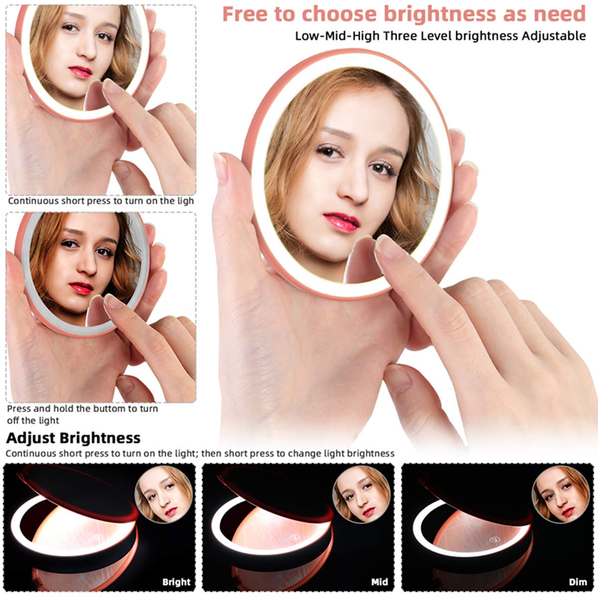 • 【Compact Lighted Beauty Care】Portable makeup mirror provides extra light during your grooming routine and allows you to achieve a professional finish; Ideal for applying makeup and other beauty treatments that require more precision extra precision, such as applying contact lenses and eyebrow tweeting, precise tweeting, lipstick,shaving, hair styling and facial care.