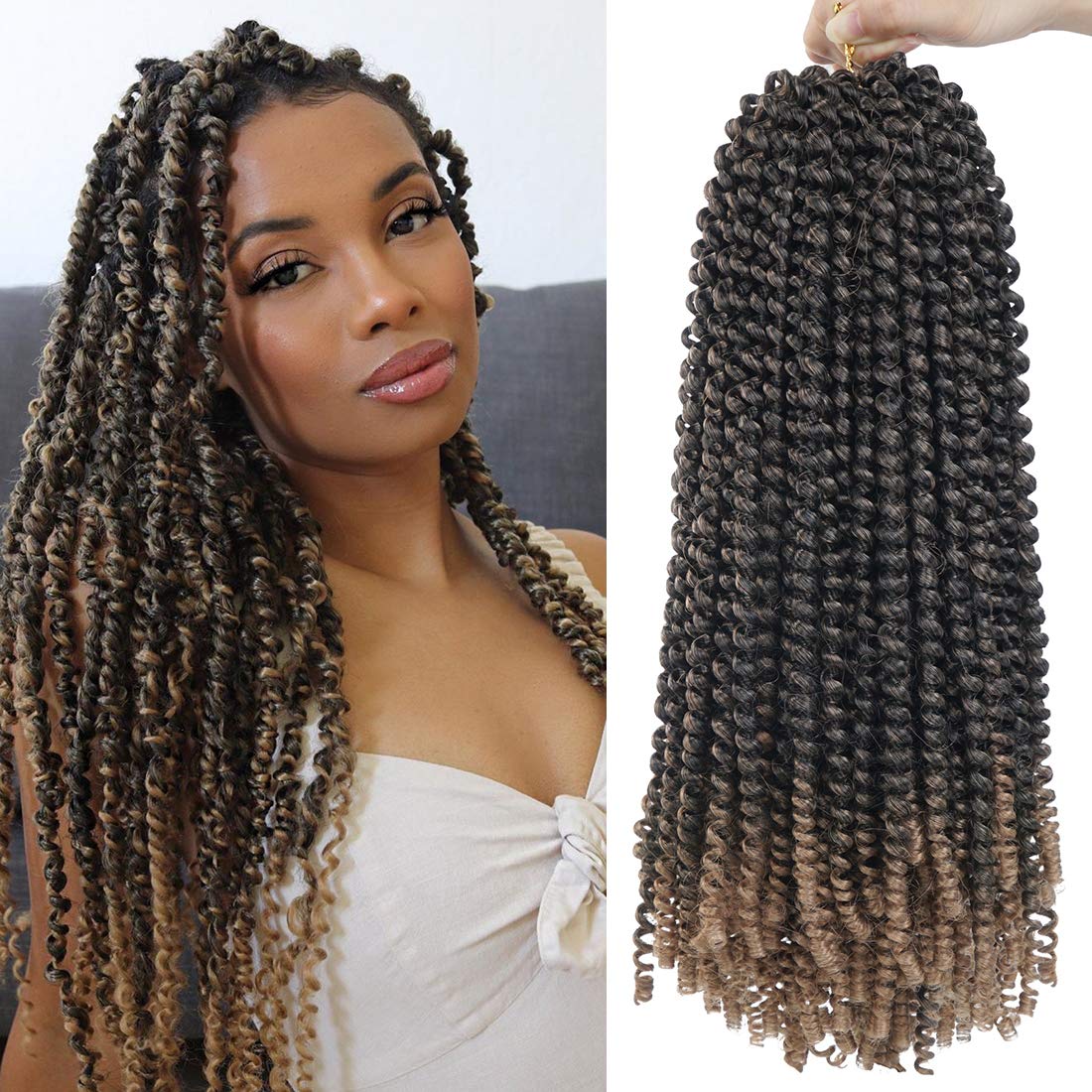 1 Pack Spring Twist Ombre Colors Crochet Braids Synthetic Braiding Hair Extensions Low Temperature Fiber (1 pcs 16 inch, M1B 27)