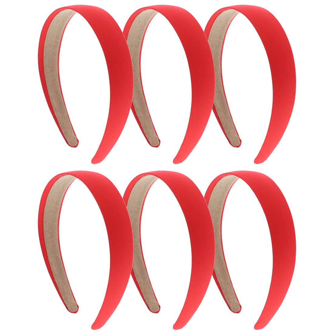 This is a set of SIX (6) 1 Inch wide satin covered headband. The inside of this high quality headband is lined with soft suede-like fabric to keep it in place. Look great in this pretty head band