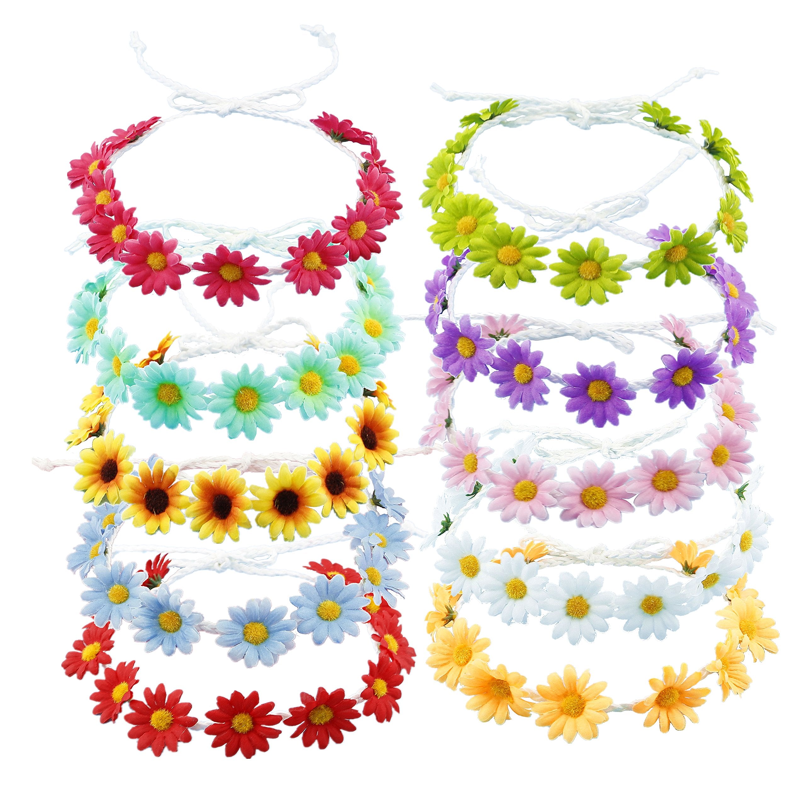 10 PCS Sunflower Headband Multicolor Floral Flower Crown Headpiece Hair Wreath For Women Girl