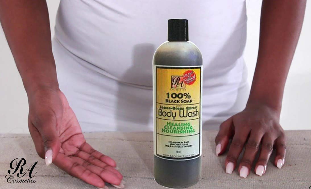 100% Black Soap Body Wash Lemon-grass Scent 13 Fl Oz Ra Cosmetics by Trifing