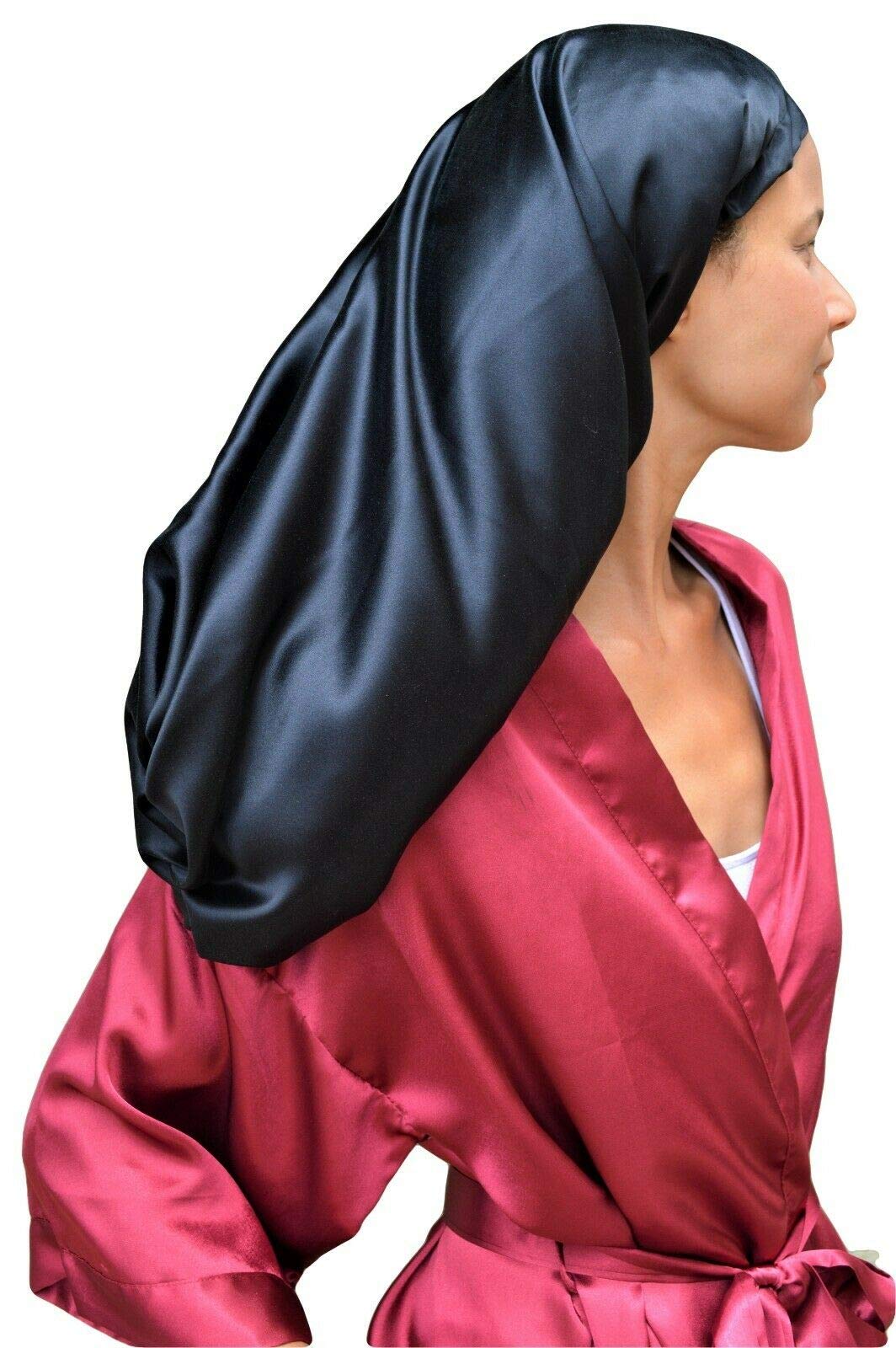 Brand: Galaxy Reborn Color: MULBERRY SILK- (black) Size: **X-Long** | Color: **MULBERRY SILK- (black)**This 100% Mulberry Silk scarf is NOT reversible. ( See others in listing that are.) Retains hair moisture naturally, promotes hair growth, protects from tangles, frizz and breakage. Adjustable band for great fit & comfort on any...