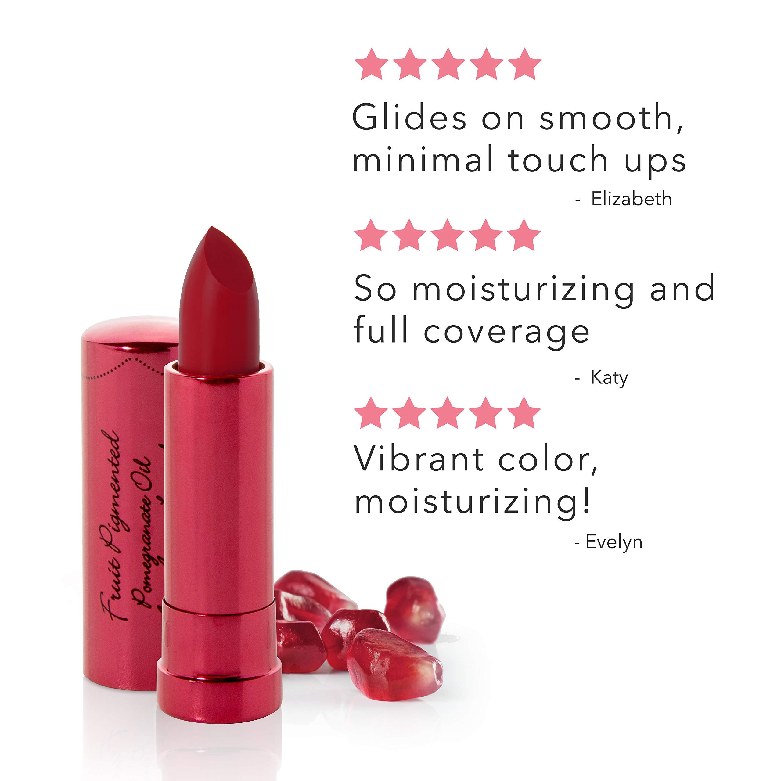 100% PURE Pomegranate Oil Anti-Aging Lipstick (Fruit Pigmented), Poppy, Long Lasting, Satin Finish, Vibrant Color, Moisturizing Cocoa Butter (Bright Blood Red) - 0.15 oz