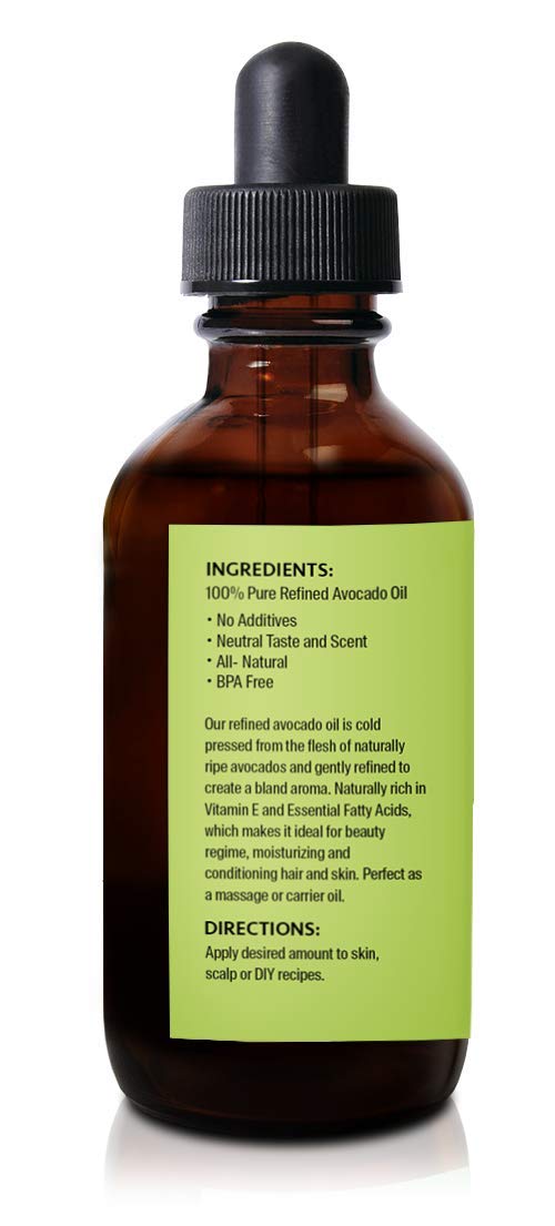 100% Pure Refined Avocado Oil 4 oz - Premium Natural Cold Pressed Oil - Best for Hair Growth, Face, Skin
