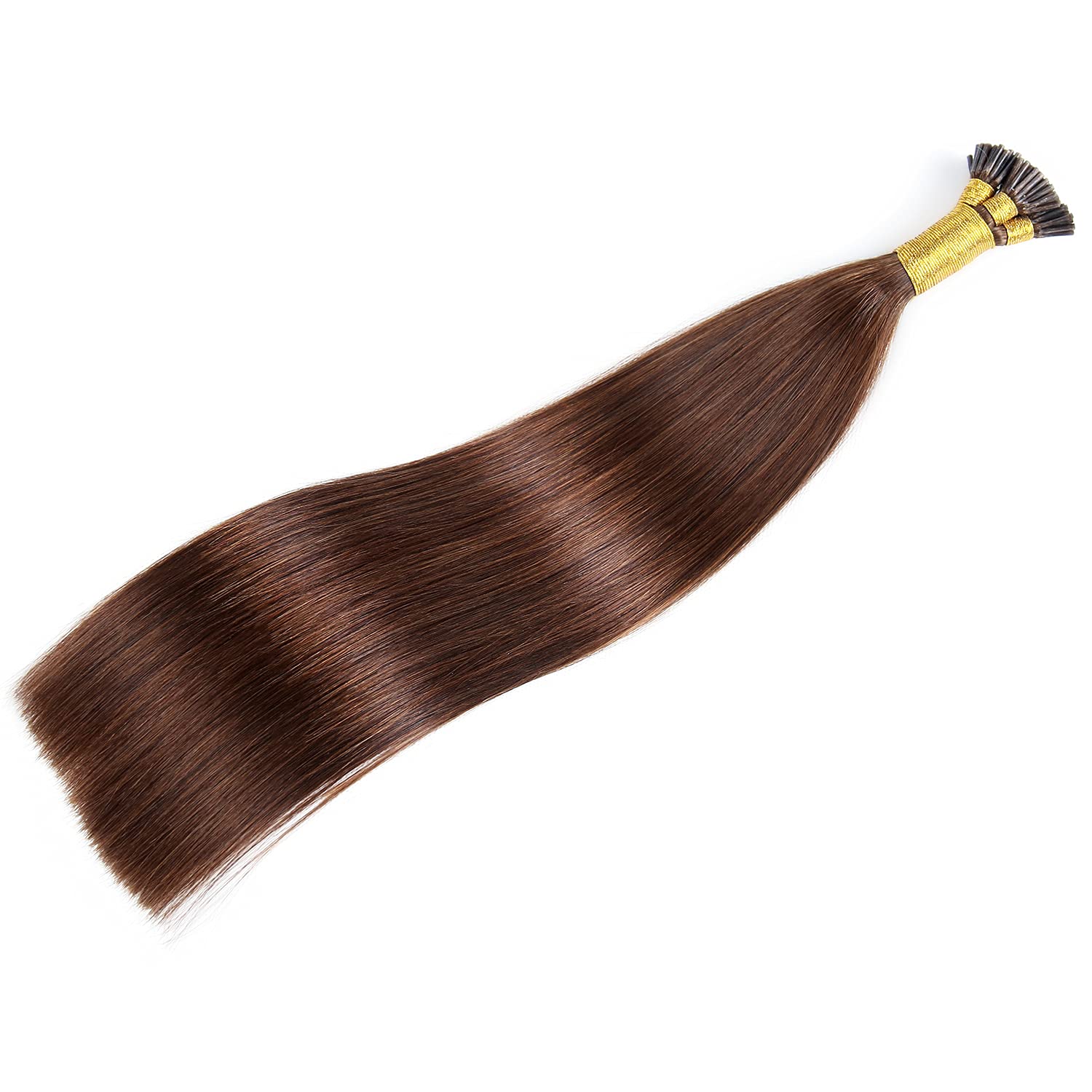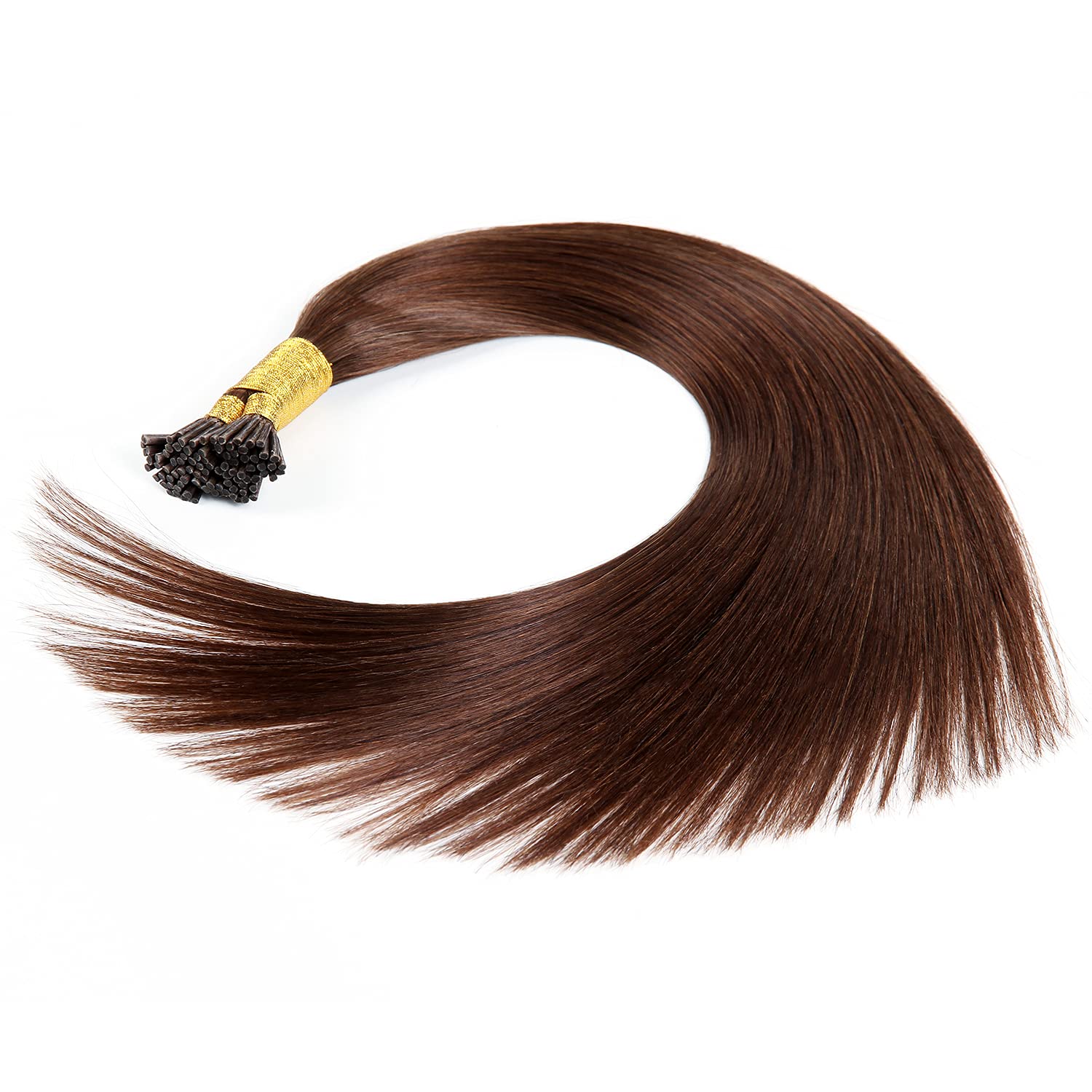100 Strands/Pack I Tip Remy Human Hair Extensions Pre Bonded Keratin Stick In Hair Cold Fusion Hair Piece For Women Long Straight #4 Medium Brown 1g/Strand 100 Gram Per Package (22inch/55cm,#4)