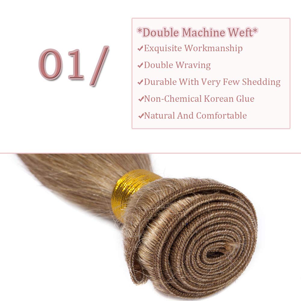 100% Unprocessed Brazilian Virgin Hair Extensions Human Hair Bundles Straight Human Hair Weft Weave Grade 7A Natural Hair #27 Dark Blonde 18'' 100g
