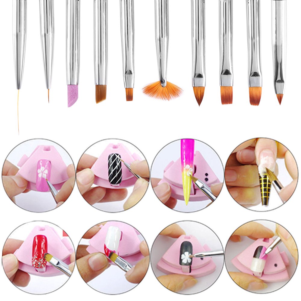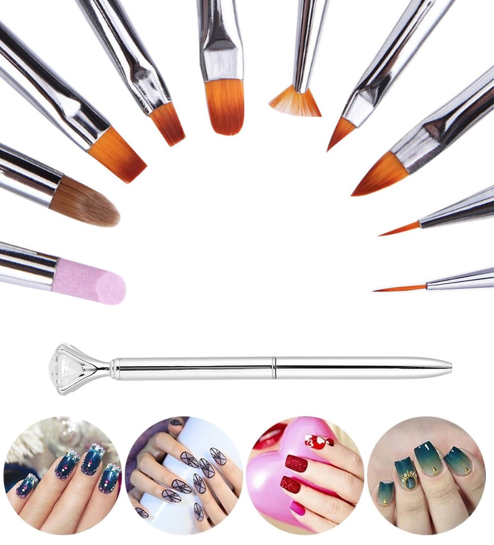 **Package Includes** : 1*Silver brush handle+10pcs * different brush head **Handle Material** : Metal **Head Material** : Fiber Hair **Color** : Gold/Silver/Pink (As the pictures show) **Length** : About 5.7in **Boxes Size** : 19.5*10.5cm **Warm tip** : Please wash it carefully after use, keep it clean and safe for reuse! **The Nail art brushes set is the professional manicurist and the nail art beginner first choice ornament.** Note: 1\. Due to the light and screen difference, the item's color may be slightly different from the pictures. Please understand. Make sure you don't mind before you bid. 2\. Please allow 1-2 mm differences due to manual measurement.