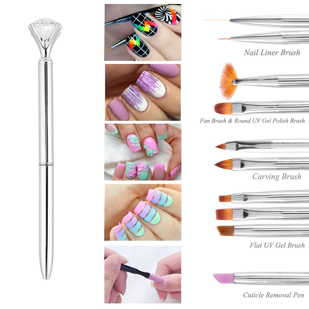 Fashion Design - Pretty metal handle, 3 color are available (Pink/ Silver/ Gold). The brush handle has a sparkly rhinestone topper. Easy to Use - Perfect for both professional use and personal use, replace any brush head that you want to use. These make you same with professional nail technician on...