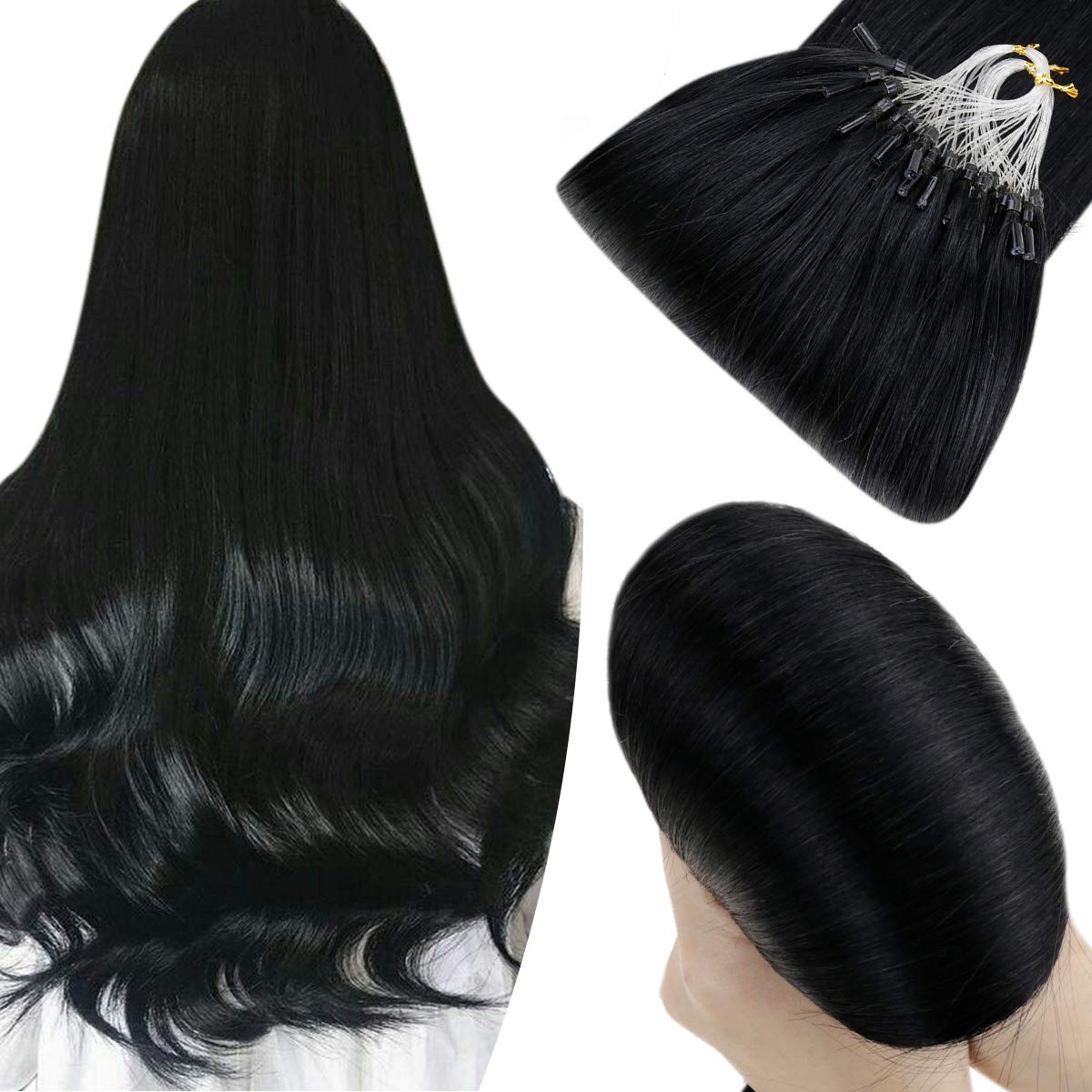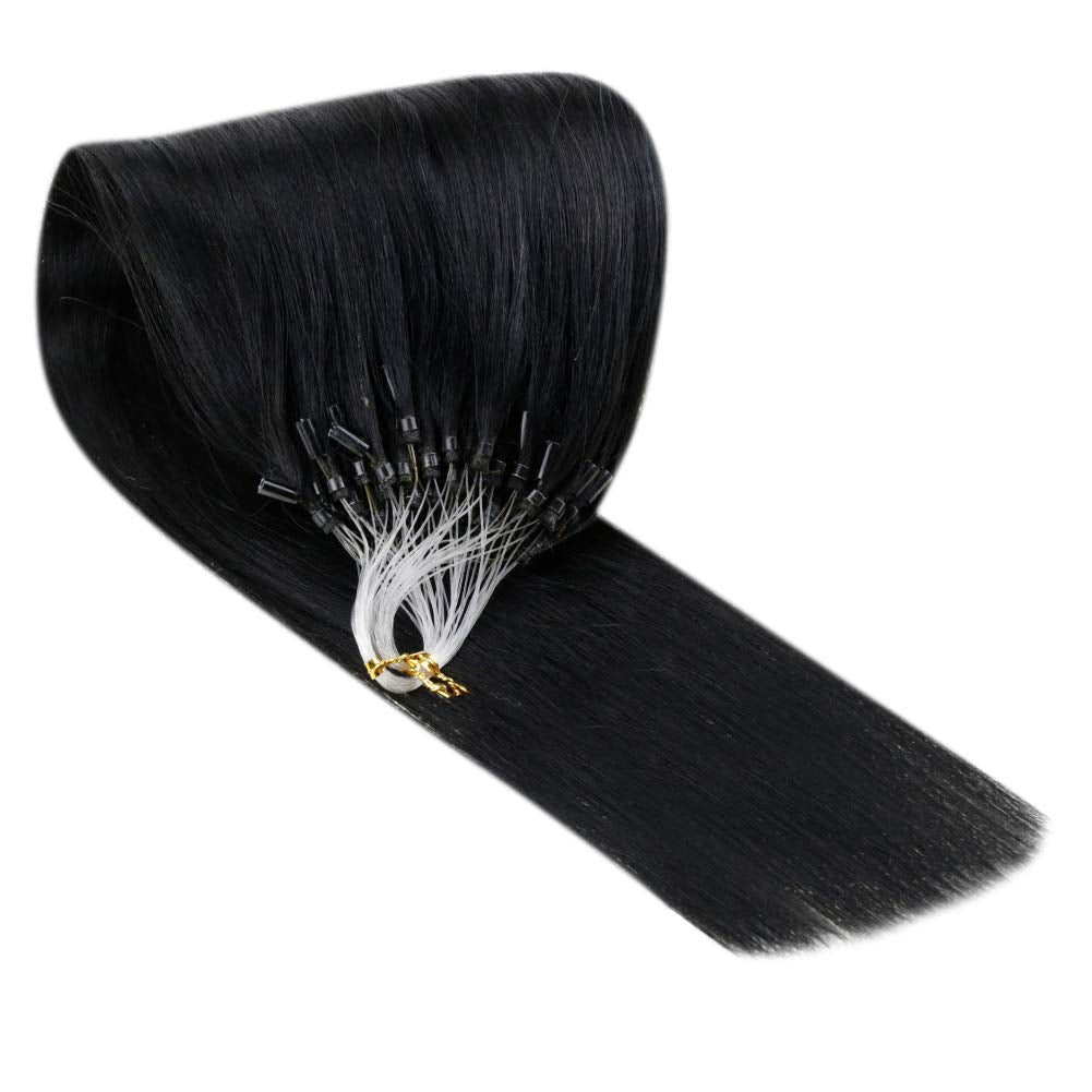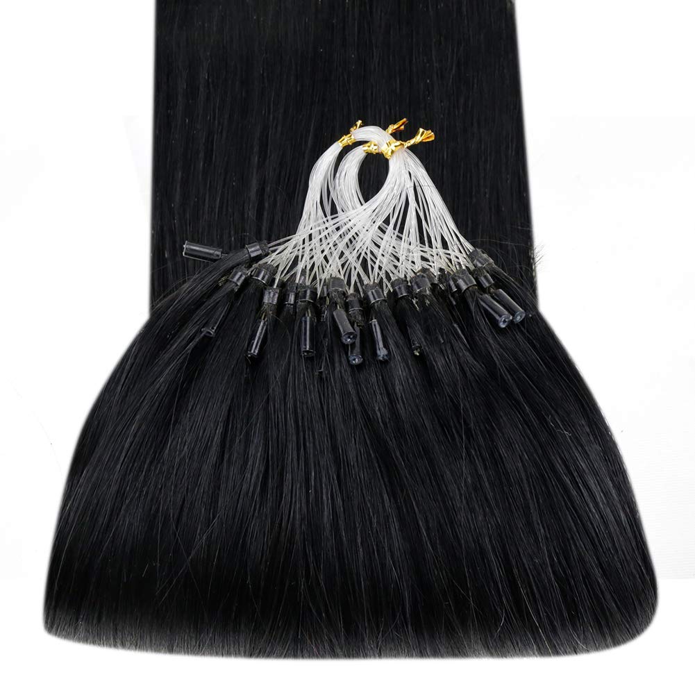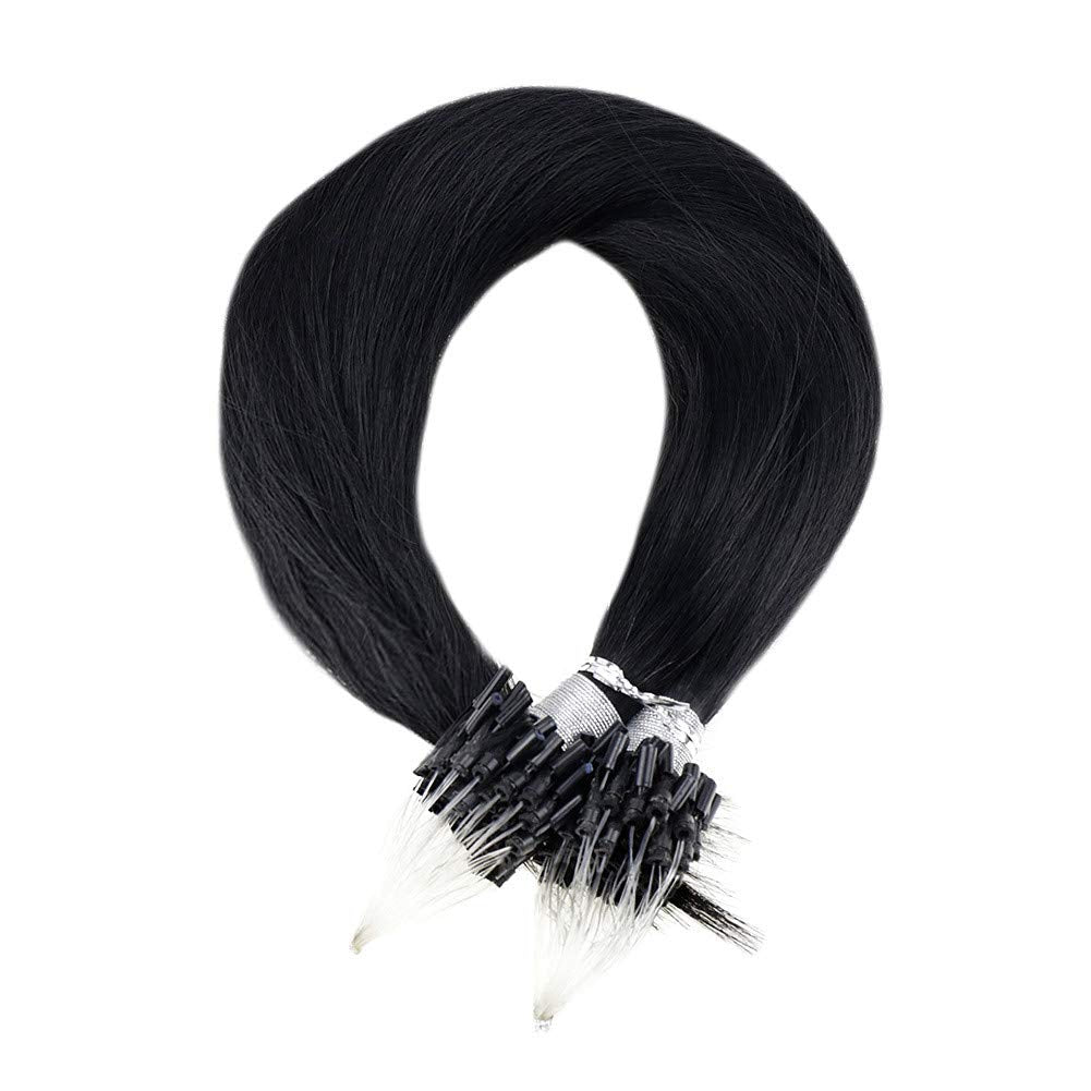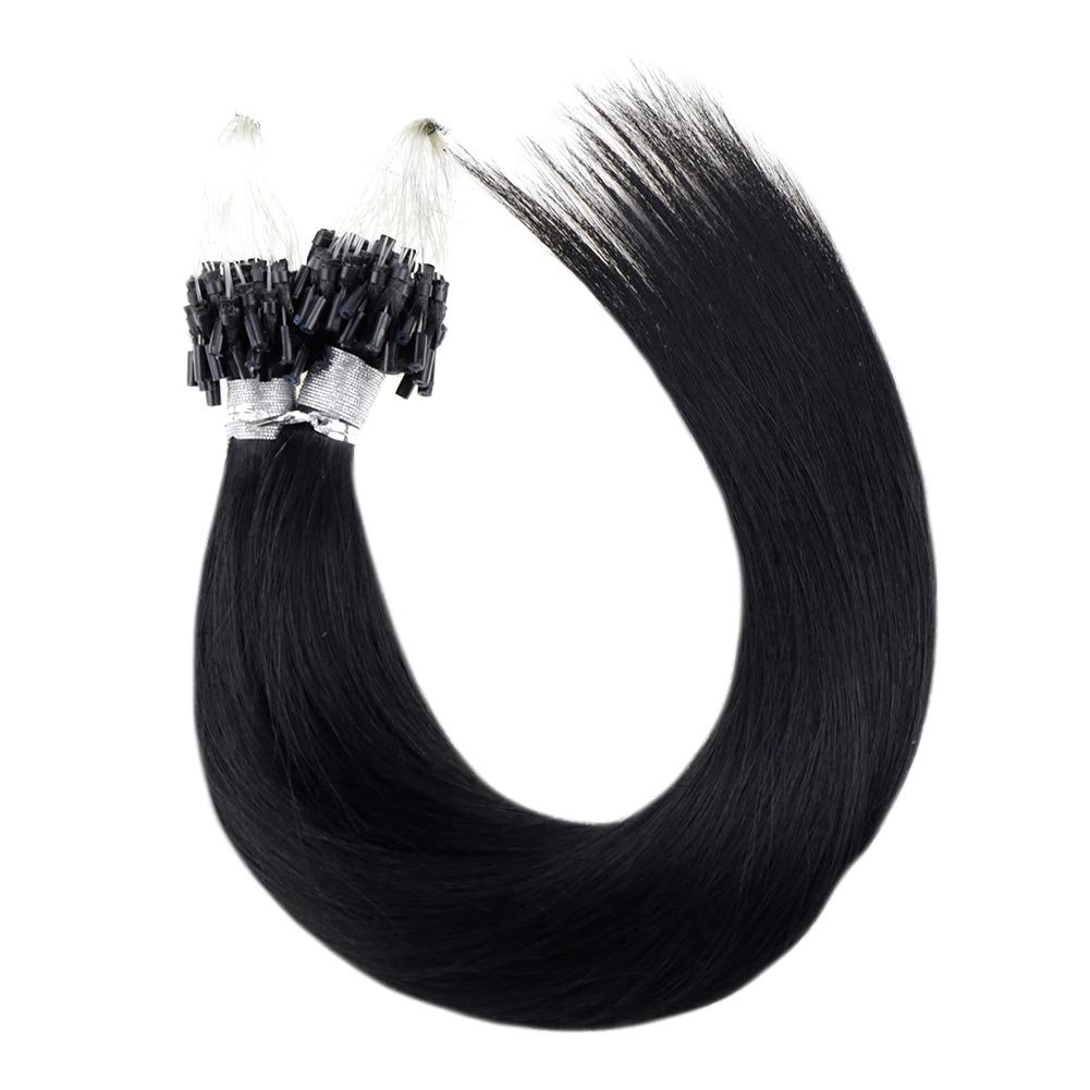 12 Inch Micro Ring Hair Extensions Human Hair Hetto 50Strands #1 Jet Black Remy Micro Beads Link Beads Hair Extension