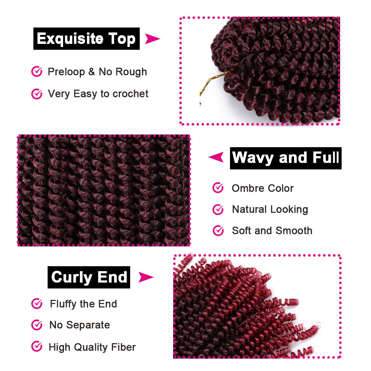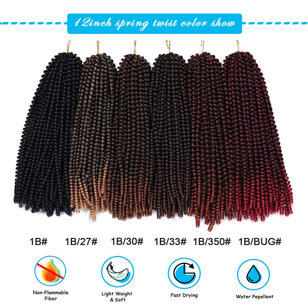 1.Hair Information: 12 Inch Spring Twist Crochet Braiding Hair Extension, Spring Twist Hairstyles for Women, High Quality Synthetic Fiber Braiding Hair. 2.Hair Material: 100% Kanekalon Synthetic Hair, Low Temperature Fiber for Spring Twist Crochet Braids, Pre-looped Twist Crochet Braid Hair. 3.Hair Feature: 1B,T1B/27,T1B/30,T1B/33,T1B/350,T1B/ Burgundy. 6Colors Available, 12Inche Long Spring Twist...