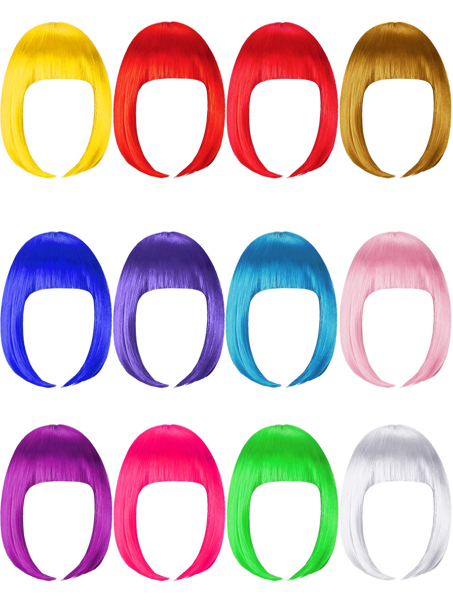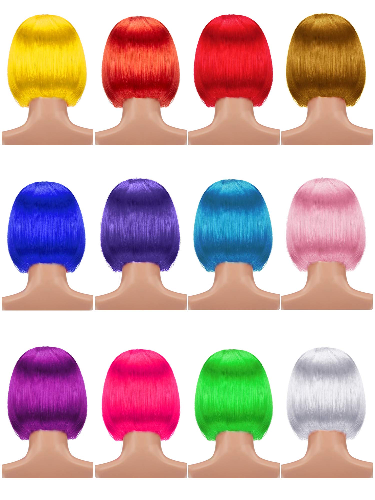 - What you get: the package comes with 12 pieces short bob hair wigs in 12 different colors, the sufficient quantity will meet your various needs, and the different colors will allow you to match with your clothes