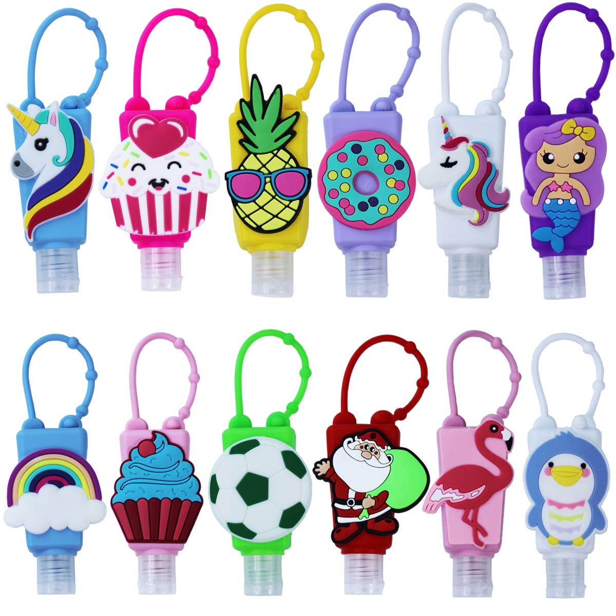 Package Includes: 12 x Silicone cartoon travel bottle holders ; 12 x 30 ml Travel bottles. The mini bottles can be attached to your keys, bags, purses. Leak-proof Design bottle: The empty bottles are made of reliable material and durable enough, small size and not easy to leak. Perfect Gift: The keychain holders set can be applied as a gift to send your friends, families, classmates, girlfriend, wife, daughter or colleagues, etc.