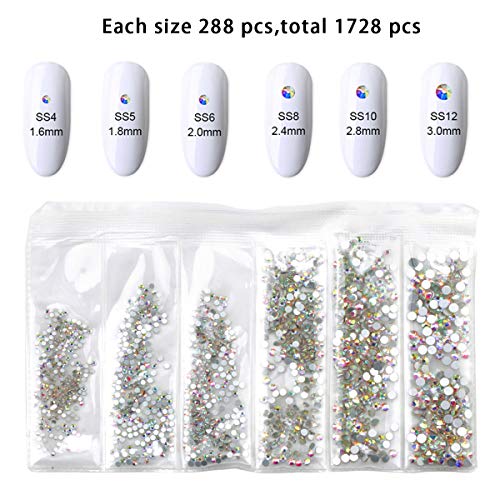 - 【Widely Used Crystal Rhinestones】Our nail jewels set is available popular iridescent crystal AB color. It works very well for your nail art, DIY craft decorating, clothes, shoes and so on. Is a very personal and fashionable rhinestones for crafts.