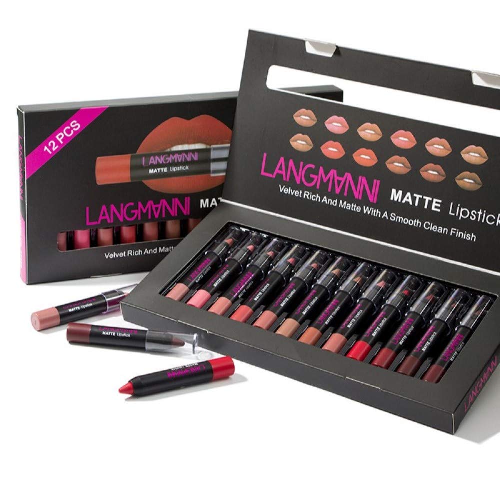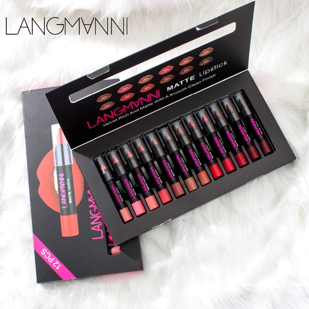12pcs kit matte Lipstick Set Waterproof Nutritious Velvet lip stick Red Tint Nude batom makeup set (1) by LANGMANNI Store