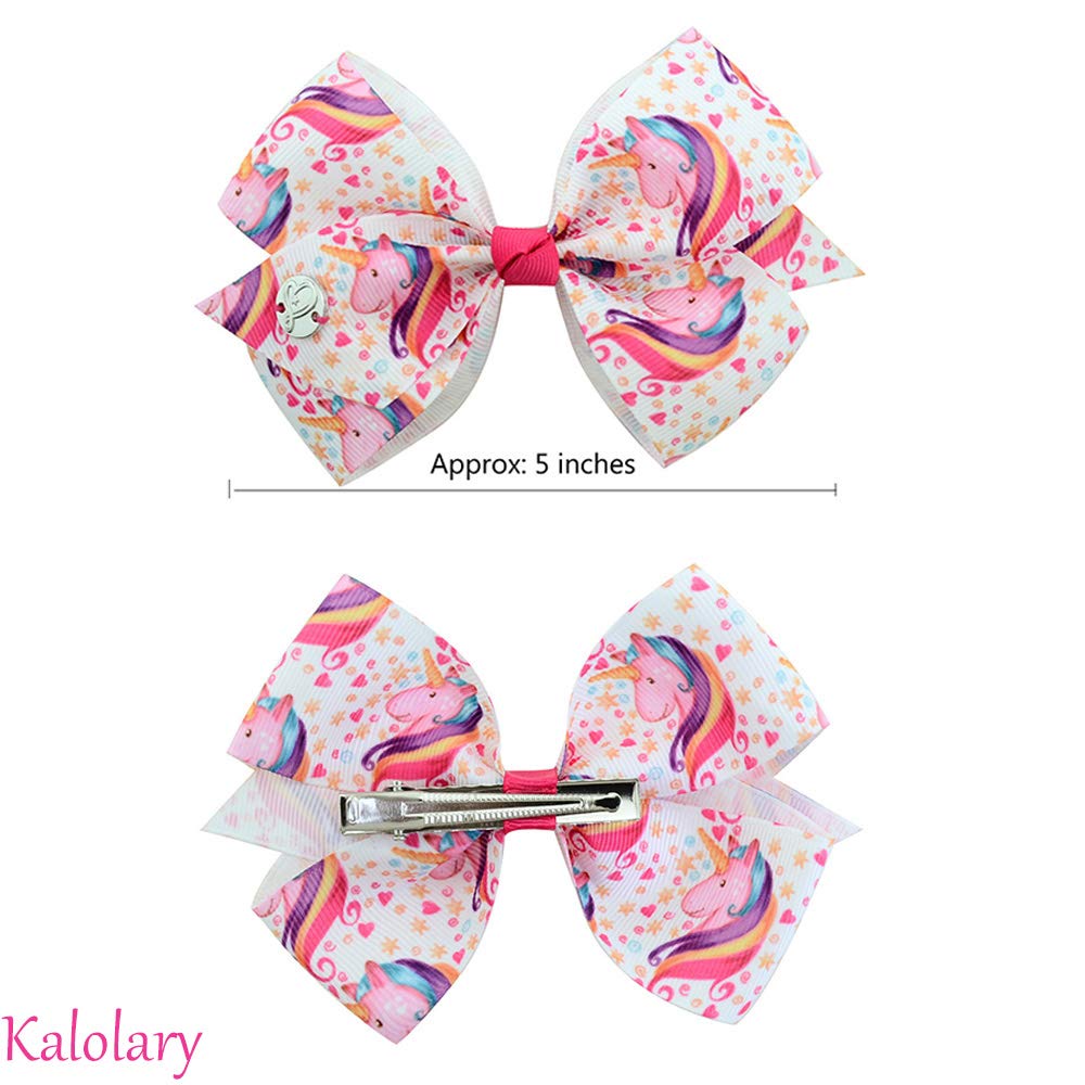 12Pcs/Set Kalolary Hair Bows Alligator Clips for Girls Gift, 5 Inches Unicorn Grosgrain Ribbon Hair Barrettes Accessories, Ideal Gift for Toddler Girls' Birthday Valentine's Day