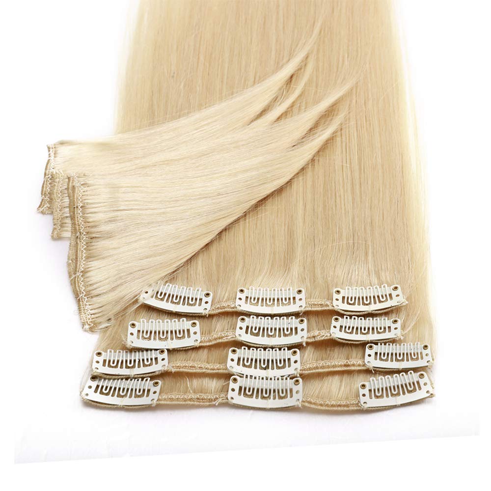 14 Inch Remy Clip in Hair Extensions 100% Human Hair 60g Thin Standard Weft 8 Pcs Clip on Human Hairpieces Medium Length Silky Straight Hair for Women Beauty #613 Bleach Blonde by Hairro Store