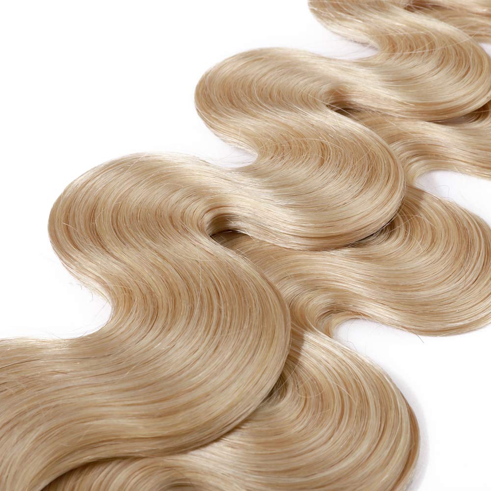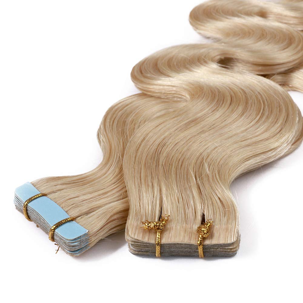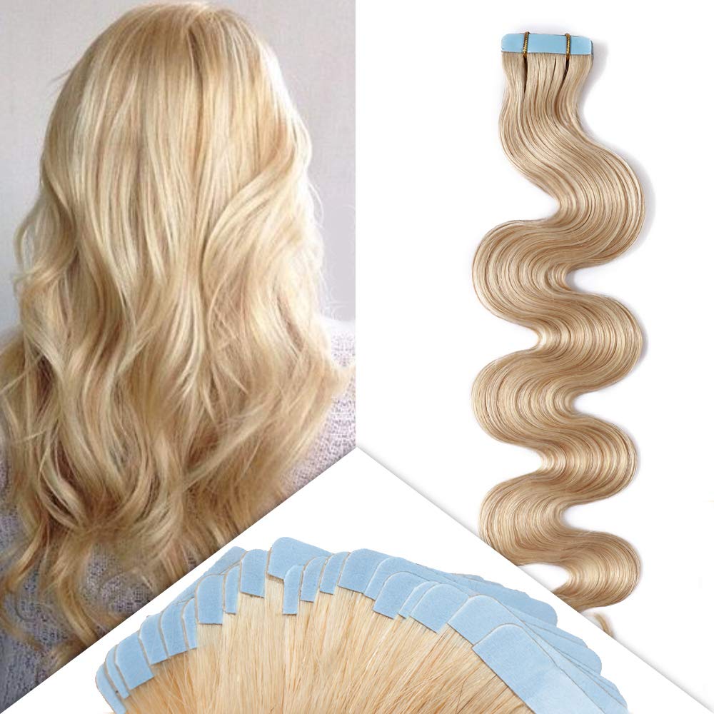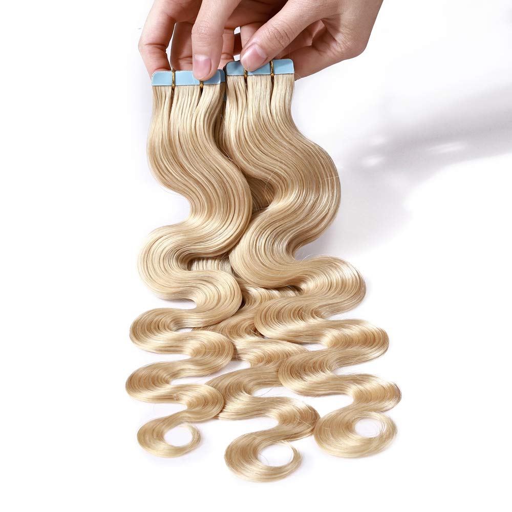 14 Inch Tape in Hair Extensions Body Wavy Human Hair 100g Thin Long Hair 40pcs/pack Seamless Skin Weft Glue in Wavy Hairpieces with Invisible Double Sided Tapes #613 Bleach Blonde by Hairro Store