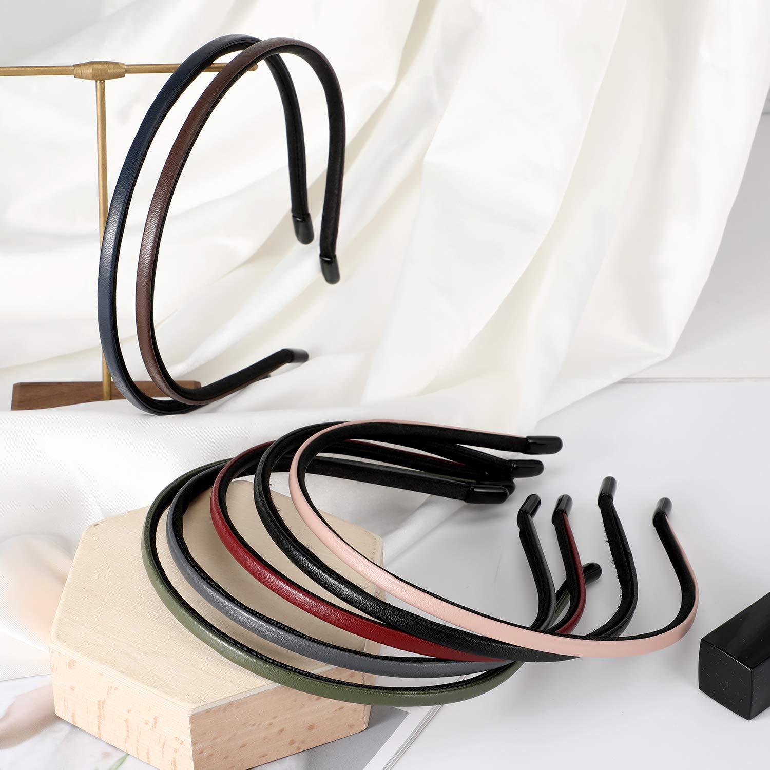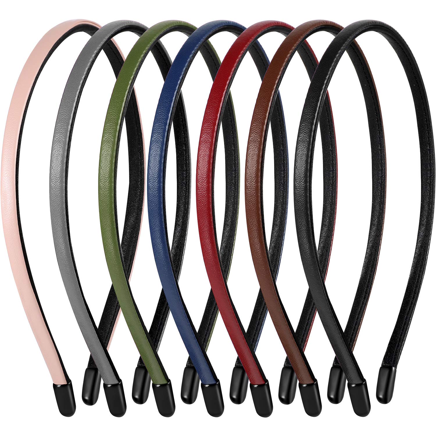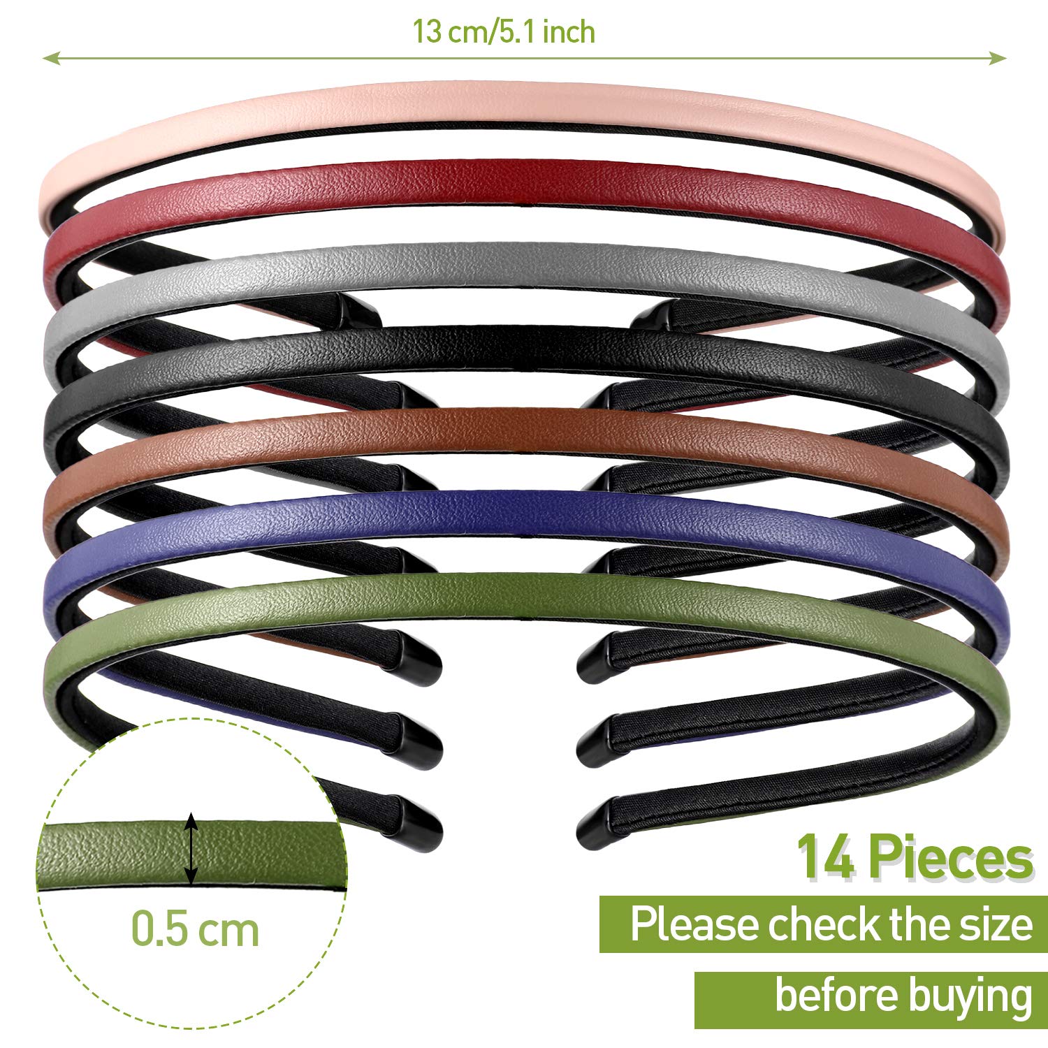 14 Pieces simple leather covered headbands 5 mm wide solid skinny leather hair band plastic hair loop hair accessories for women and girls, 7 colors Various colors: The solid skinny leather headbands are available in a wide range of colors, which will meet your different needs, and let your hair develop a different charming style, at the same time, adding extra colors and fun to your life. Simple and beautiful: These leather covered headbands are coming in simple and classic style, with skinny leather surface and silk fabric lining for a smooth wearing experience. In addition, its bottom has a soft wrap to prevent your hair and scalp from scratches, styling comfortably as desired. Suitable occasions: Our solid skinny leather hair band can be worn for different occasions, such as parties, wedding ceremony, home coming parties, concerts and so on, adding you a sense of elegance and femininity, highlighting your temperament and making you stand out from crowds. Specifications: Material: plastic and faux leather Diameter: approx. 12 cm/ 4.72 inch Width: 5 mm Package includes: 14 x Leather covered headbands Note: The leather covered is artificial, not real leather.