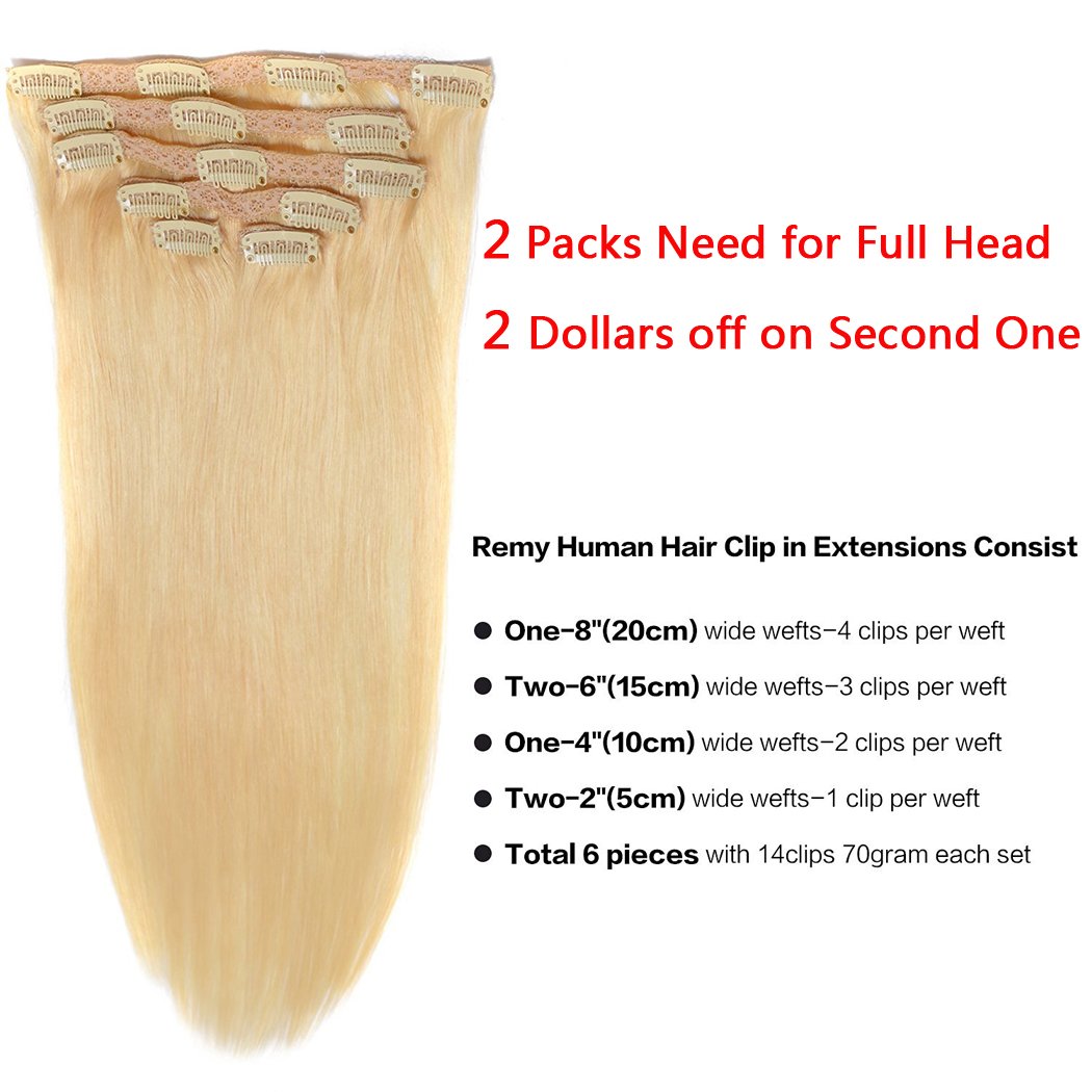 Two Packs Needed: 70gram with 14 Clips Each Pack. Usually 2 Packs is Recommended for Customers Who Have Fine Type of Hair to Add Length & Volume or 3 Packs if You Like Thick Hair. 2 Dollars off on Second or Third Pack! Can be Dyed and Styled: 100% Remy...