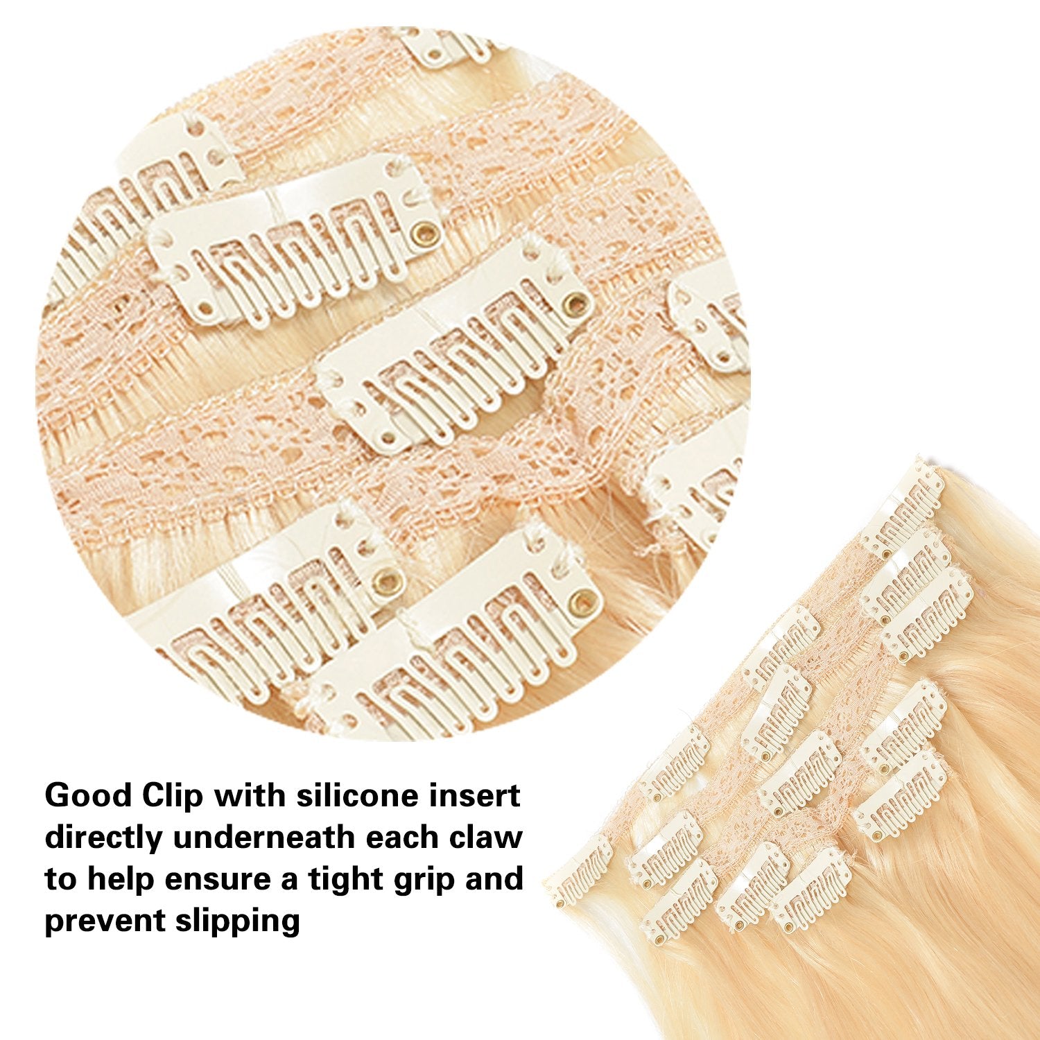 14"Remy Human Hair Clip in Extensions for Women Thick to Ends Bleach Blonde(#613) 6Pieces 70grams/2.45oz