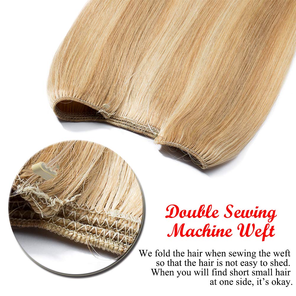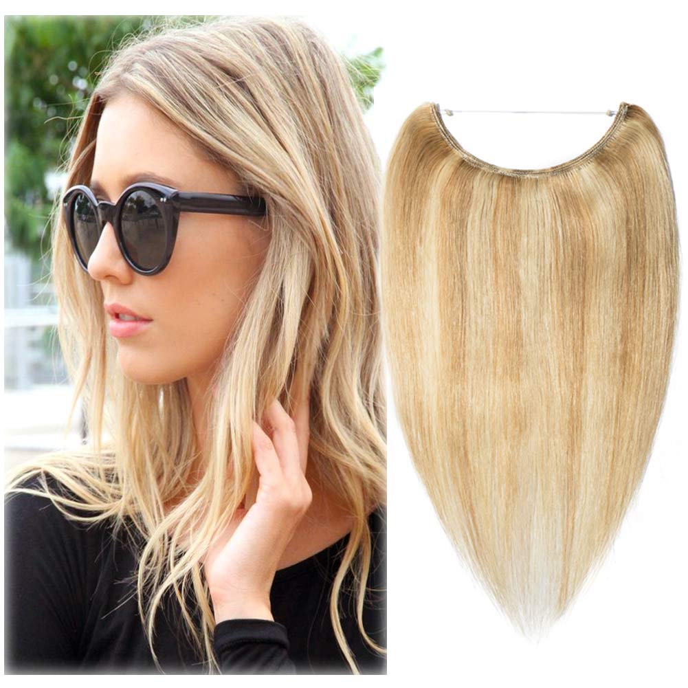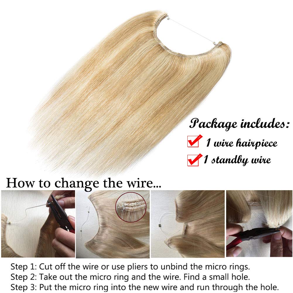 16-22inch Hidden Wire Hair Extensions Highlighted Human Hair Crown in Hairpiece Secret Translucent Fish Line No Clip Miracle Headband - 20" Light Ash Blonde&Bleach Blonde 18&613# by Benehair Store