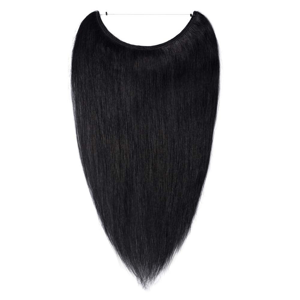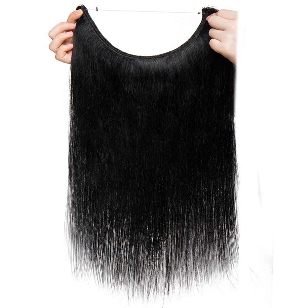 16 Inch Human Hair Hidden Crown Wire Hair Extensions Secret Fish Line in Hairpieces Long Straight No Clips No Glue Invisible Extensions 60g #1 Jet Black