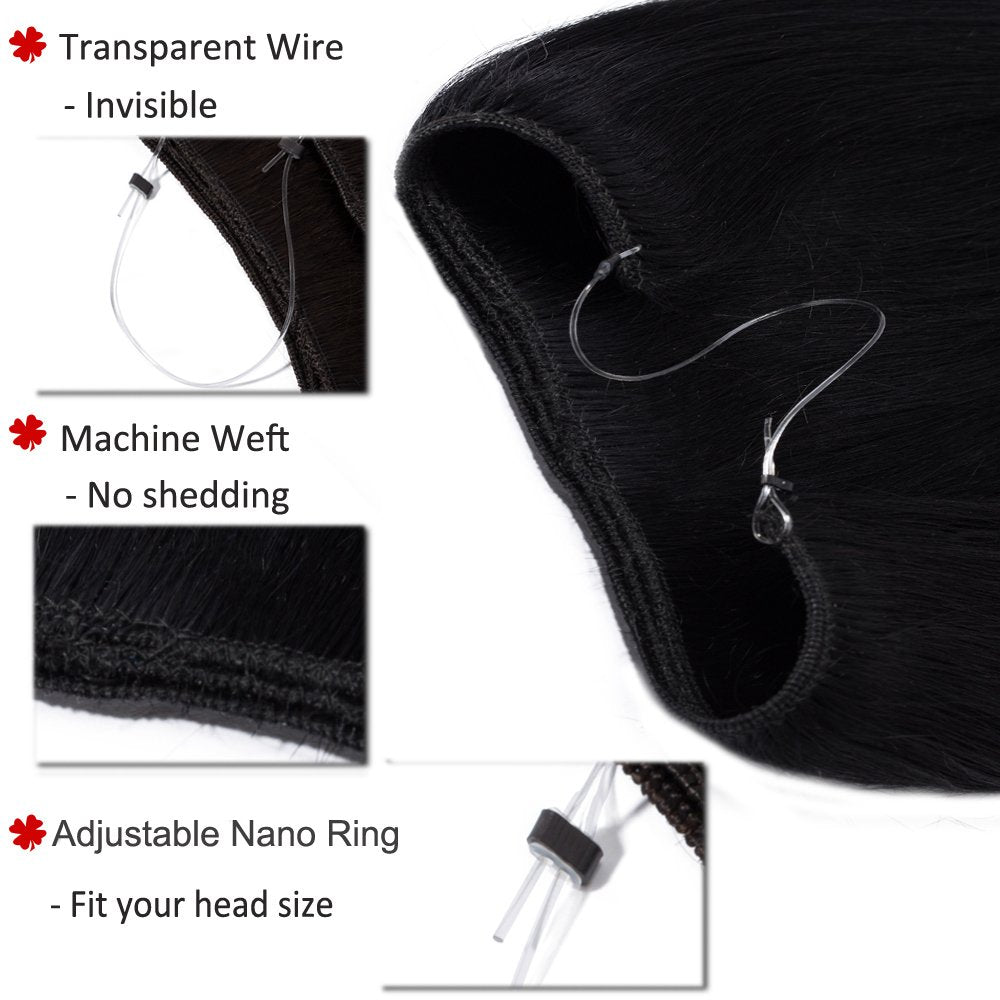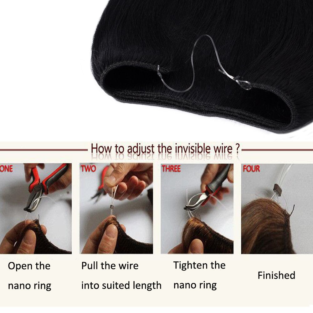 16 Inch Human Hair Hidden Crown Wire Hair Extensions Secret Fish Line in Hairpieces Long Straight No Clips No Glue Invisible Extensions 60g #1 Jet Black by Hairro Store