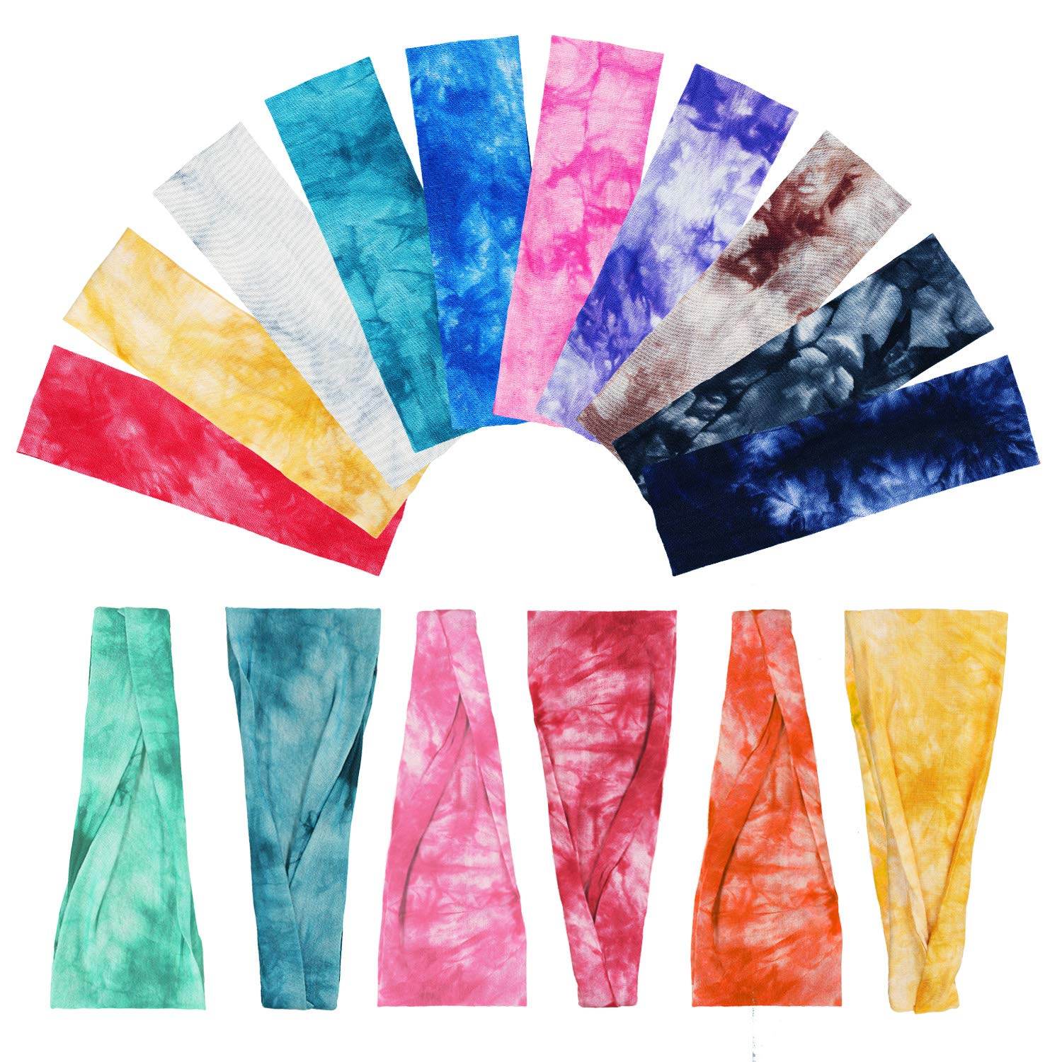 16 Pieces Tie Dye Headbands Colorful Cotton Stretchable Head Wraps Turban Headband Elastic Yoga Sports Hairbands with 2 Styles for Women Girls