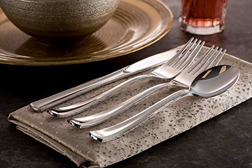 • JUST CLICK ADD TO CART NOW AND START YOUR PARTY!!: Like hosting but can't stand the mess? Well, now you are all covered! Enjoy spending time with your friends and family by simplifying it with TEPCO Setting silver plastic silverware solved problem!